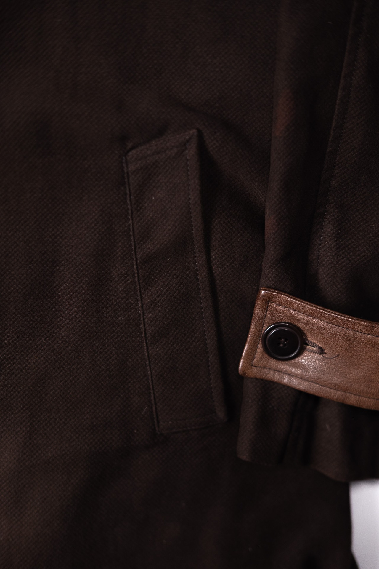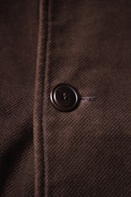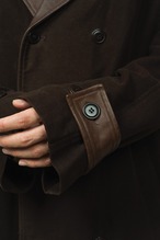 襟、カフス、身返しには、アニリン仕上げのゴートスキン。