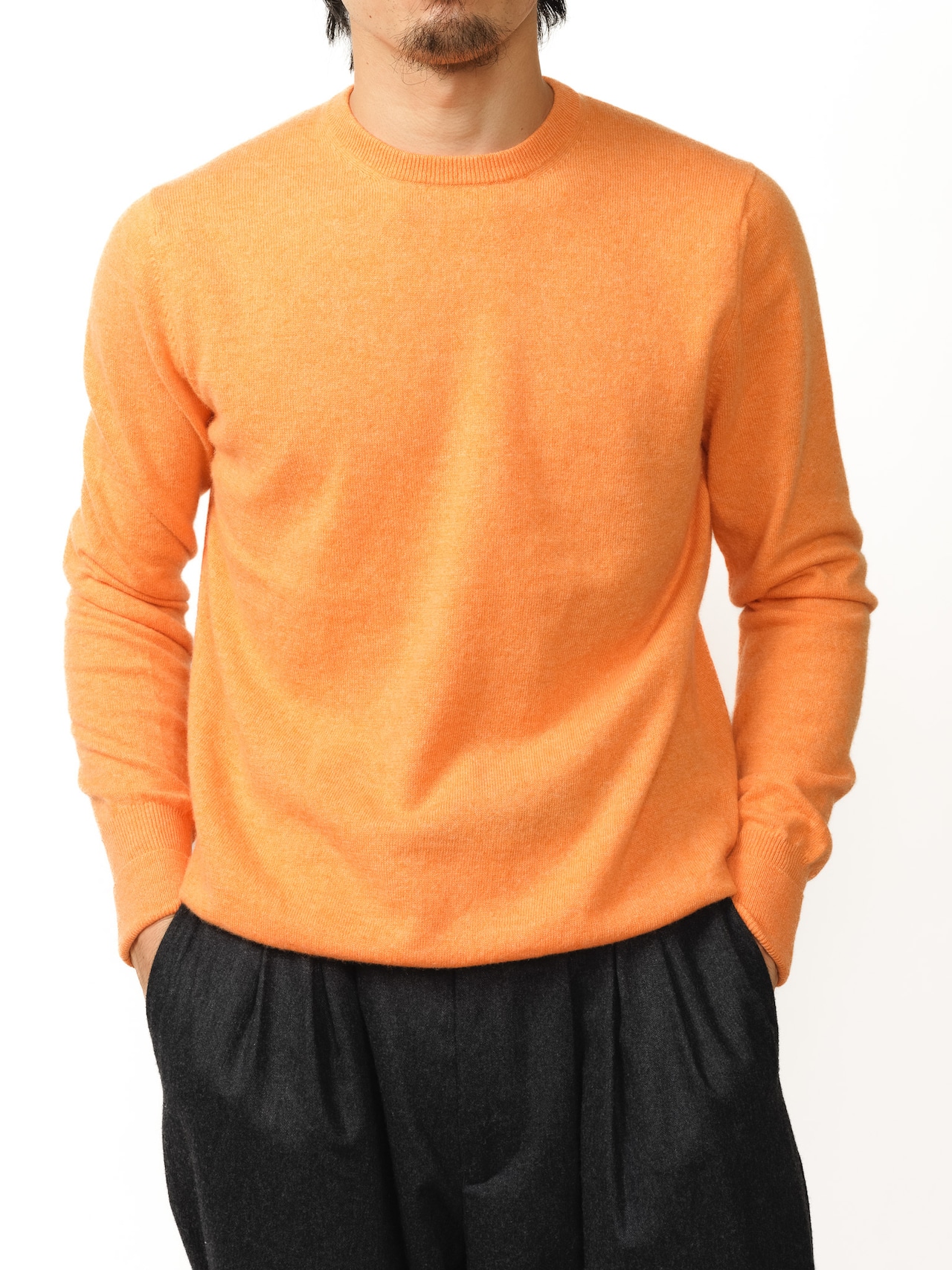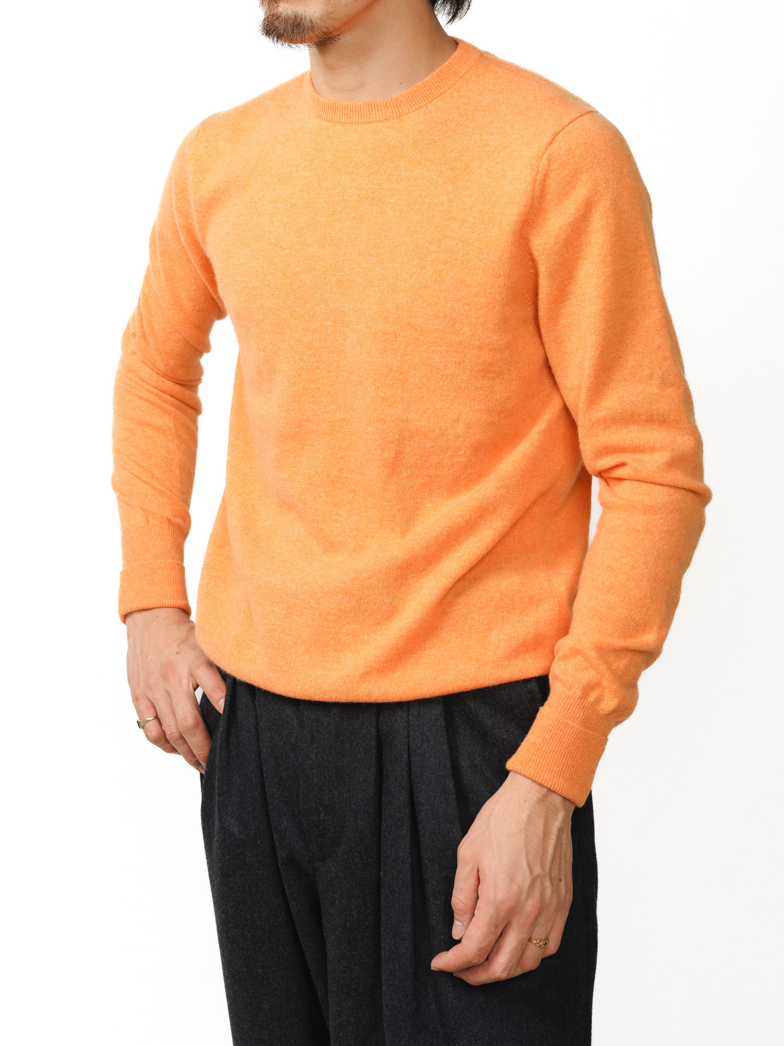 一般的なカシミヤは、染色後に脱脂・縮絨を行うため艶が落ちますが、