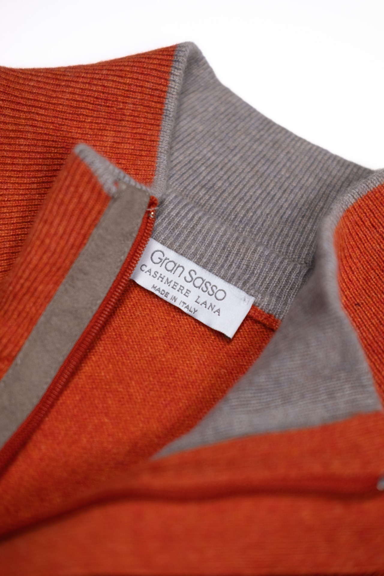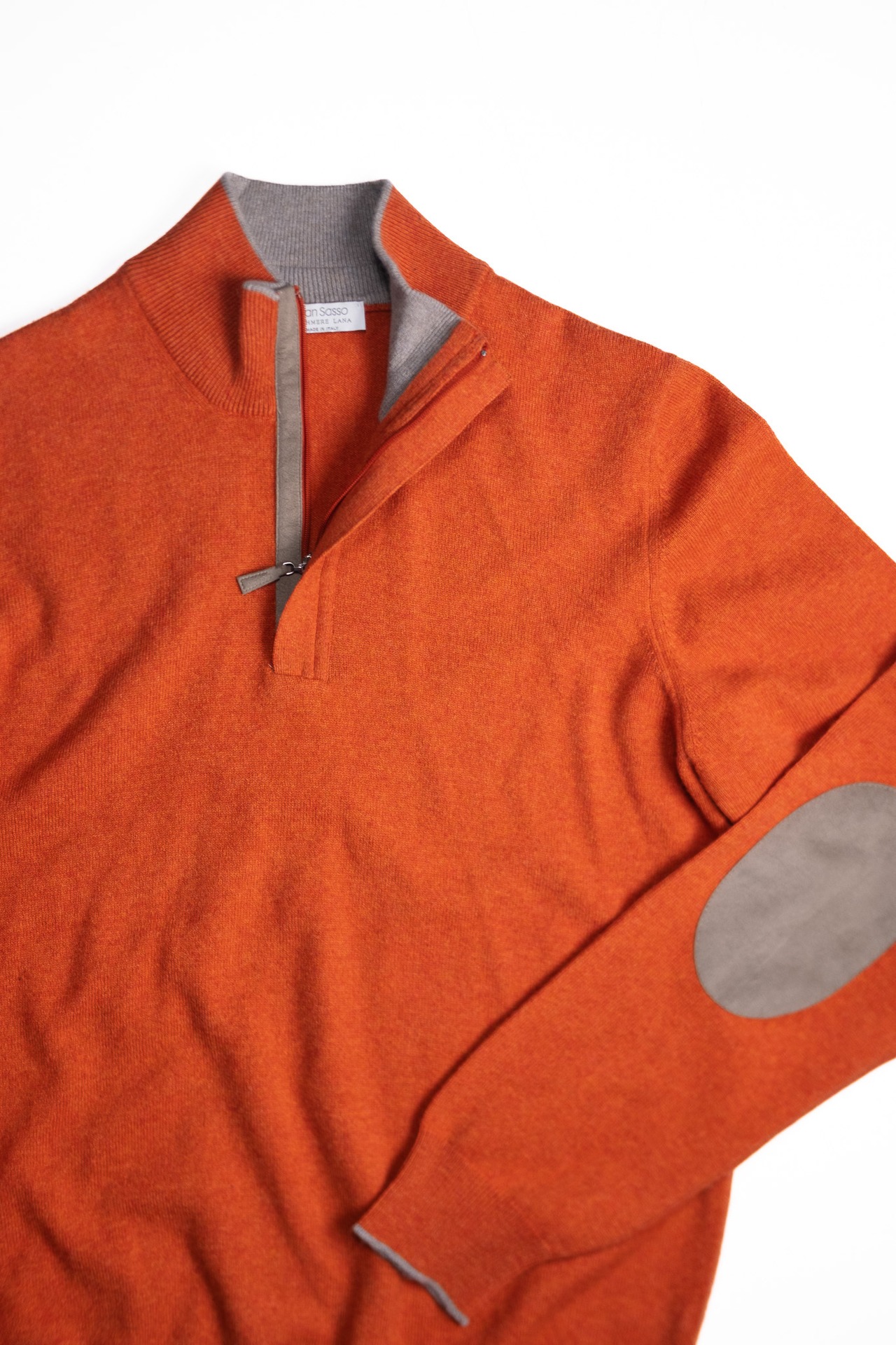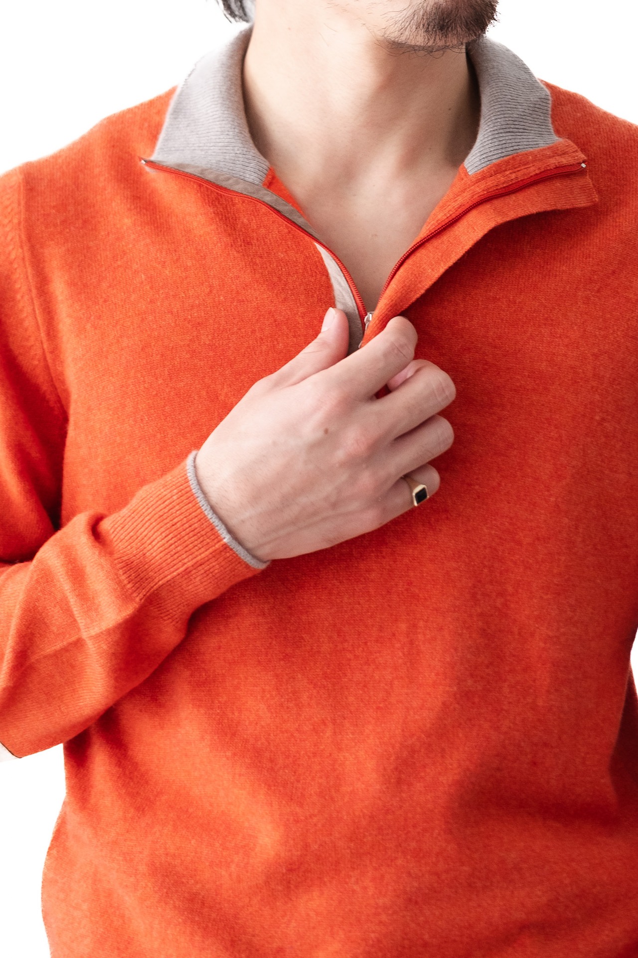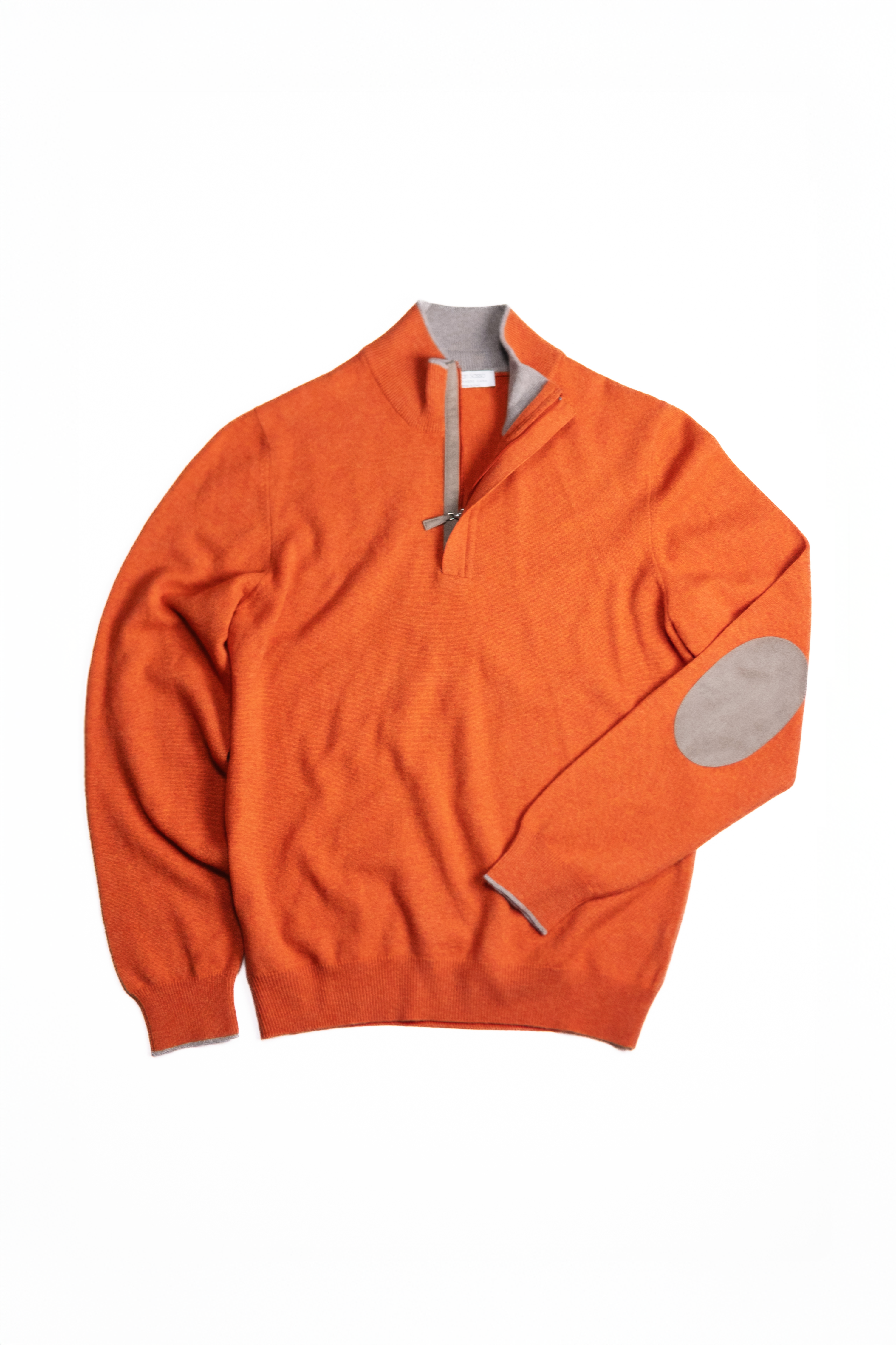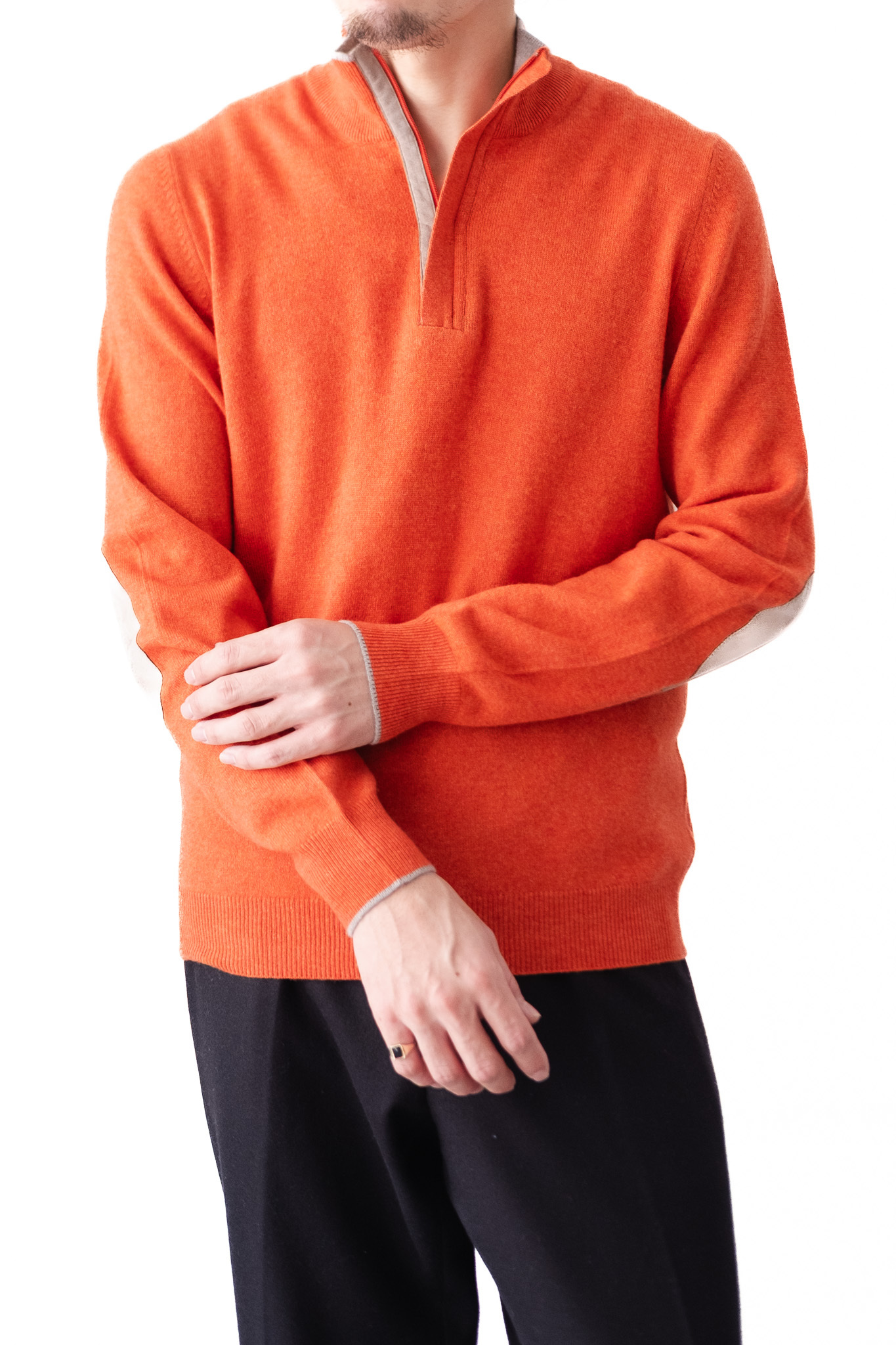 [Mid 2010’s] “GRAN SASSO” Wool-Cashmere-Viscose Half-Zip Knit Sweater with Suede Elbow Patches(Made in Italy)