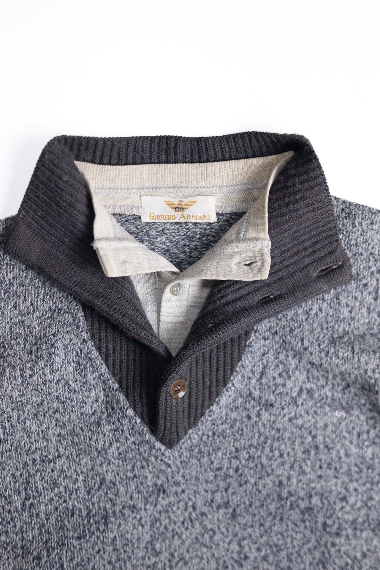 [Late 1990’s – Early 2000’s] “GIORGIO ARMANI” Layered-Collar Knit Henley Top (made in Italy)