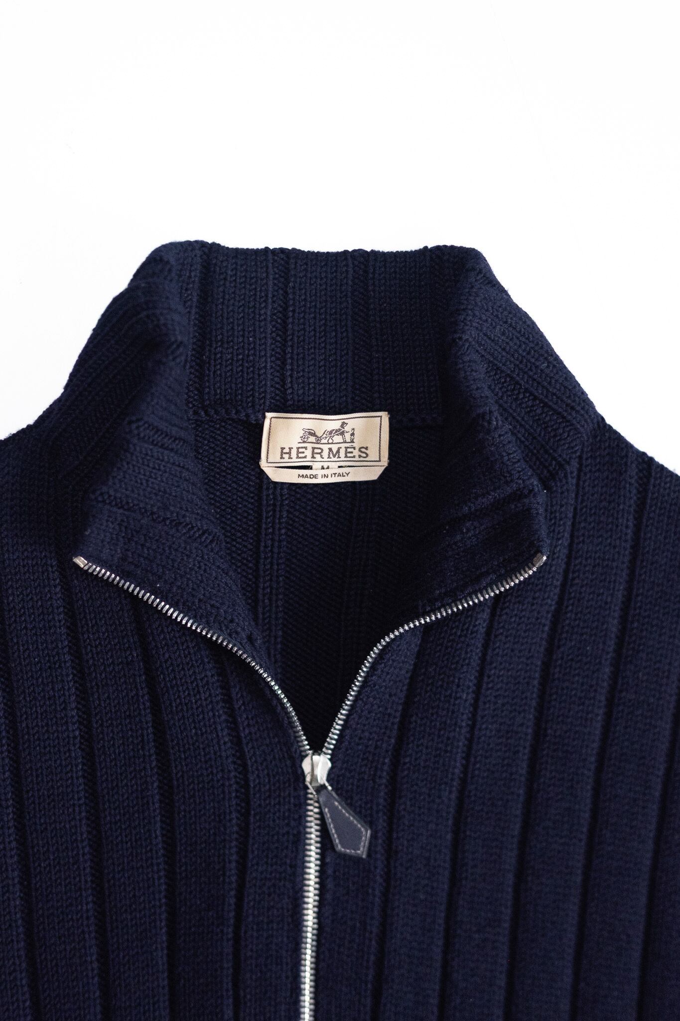 [Late 1990’s – Early 2000’s] “HERMÈS” Extra-Fine Merino Wool Ribbed Drivers Knit Jacket(Designed by Véronique Nichanian)