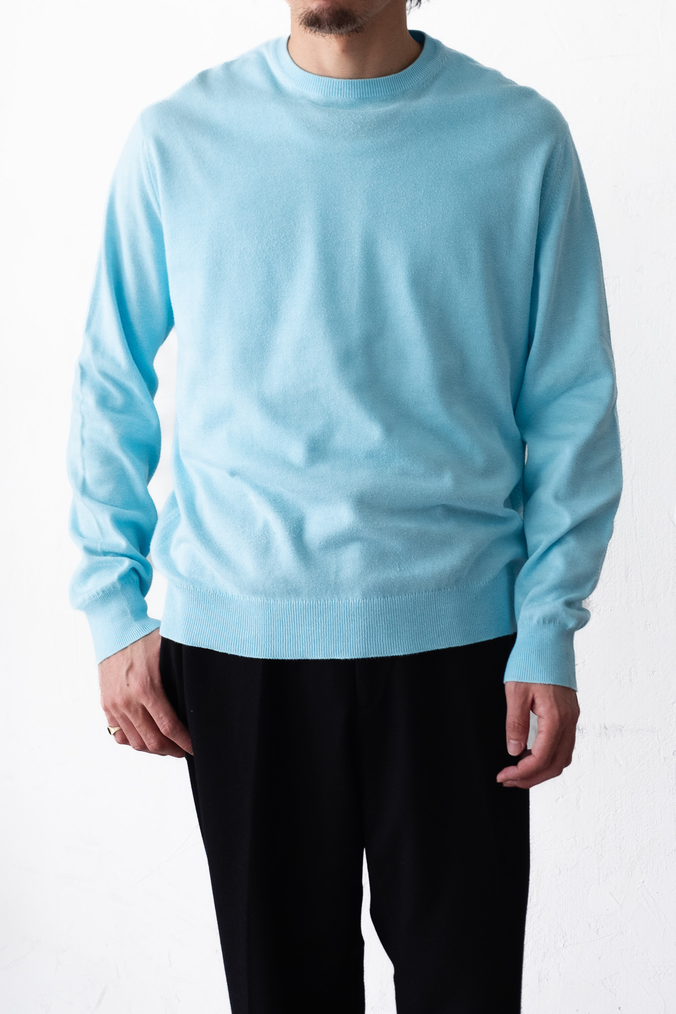 スコットランドの名門〈Ballantyne〉が手がけた、Sea Island Cottonを用いたハイゲージ・クルーネックニット。