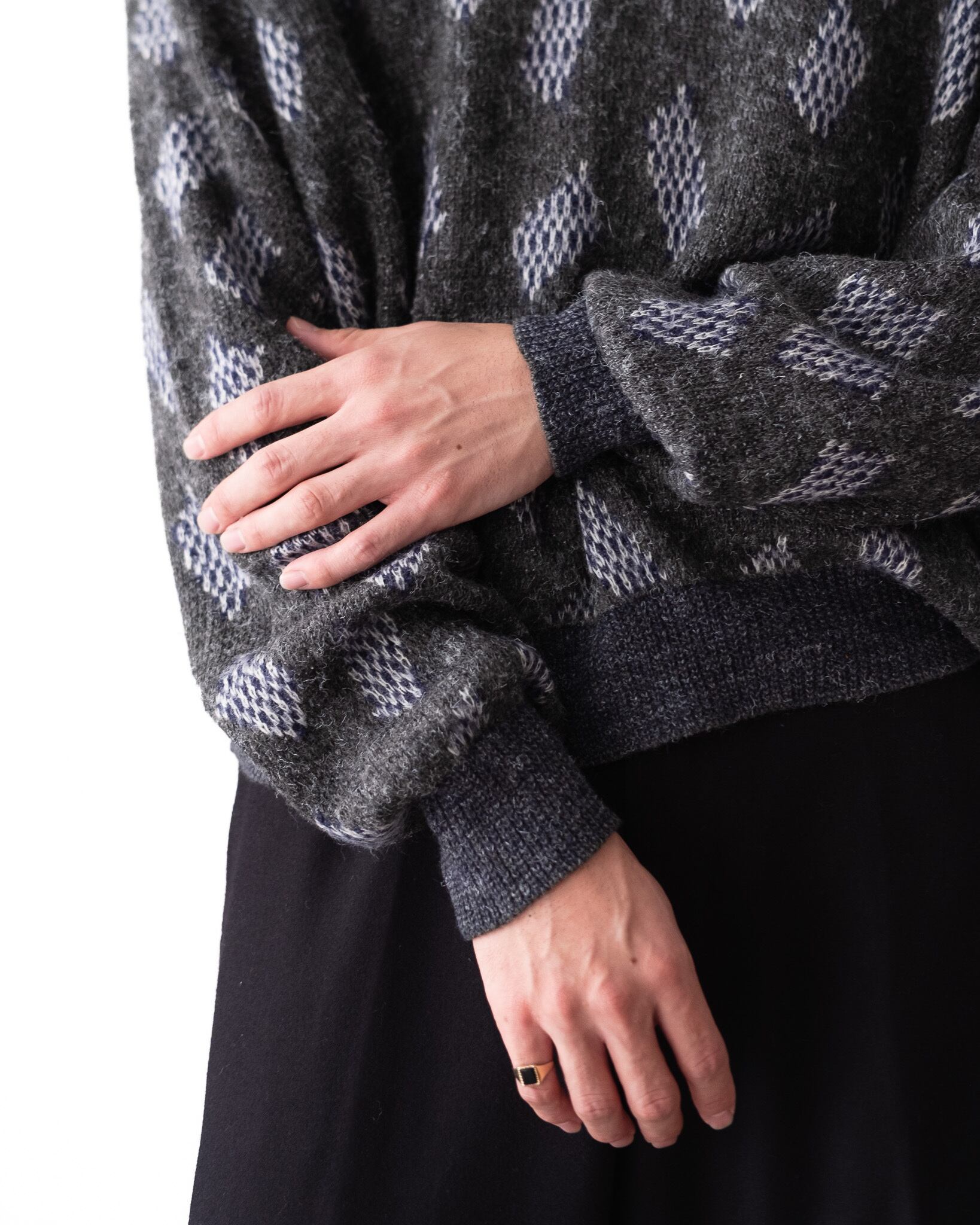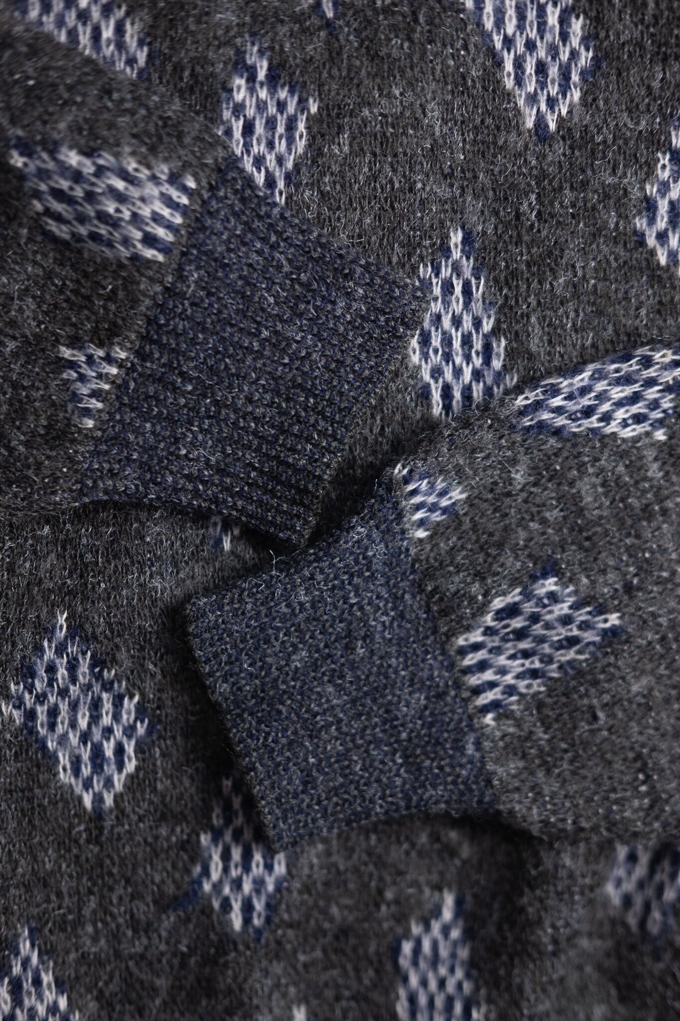 まず目を奪われるのは、編みで表現された幾何学柄。