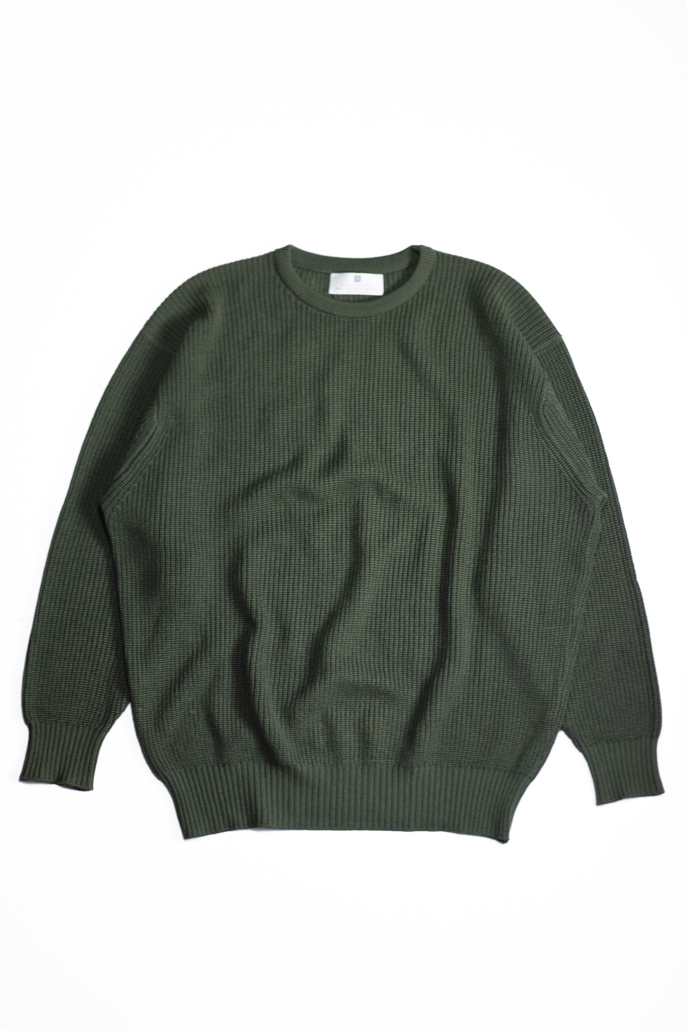 肩周りに注目すると、ショルダーラインを落とし、身幅にも余白を持たせたリラックスシルエットでありながら、袖口と裾のリブテンションで綺麗に形を整えています。