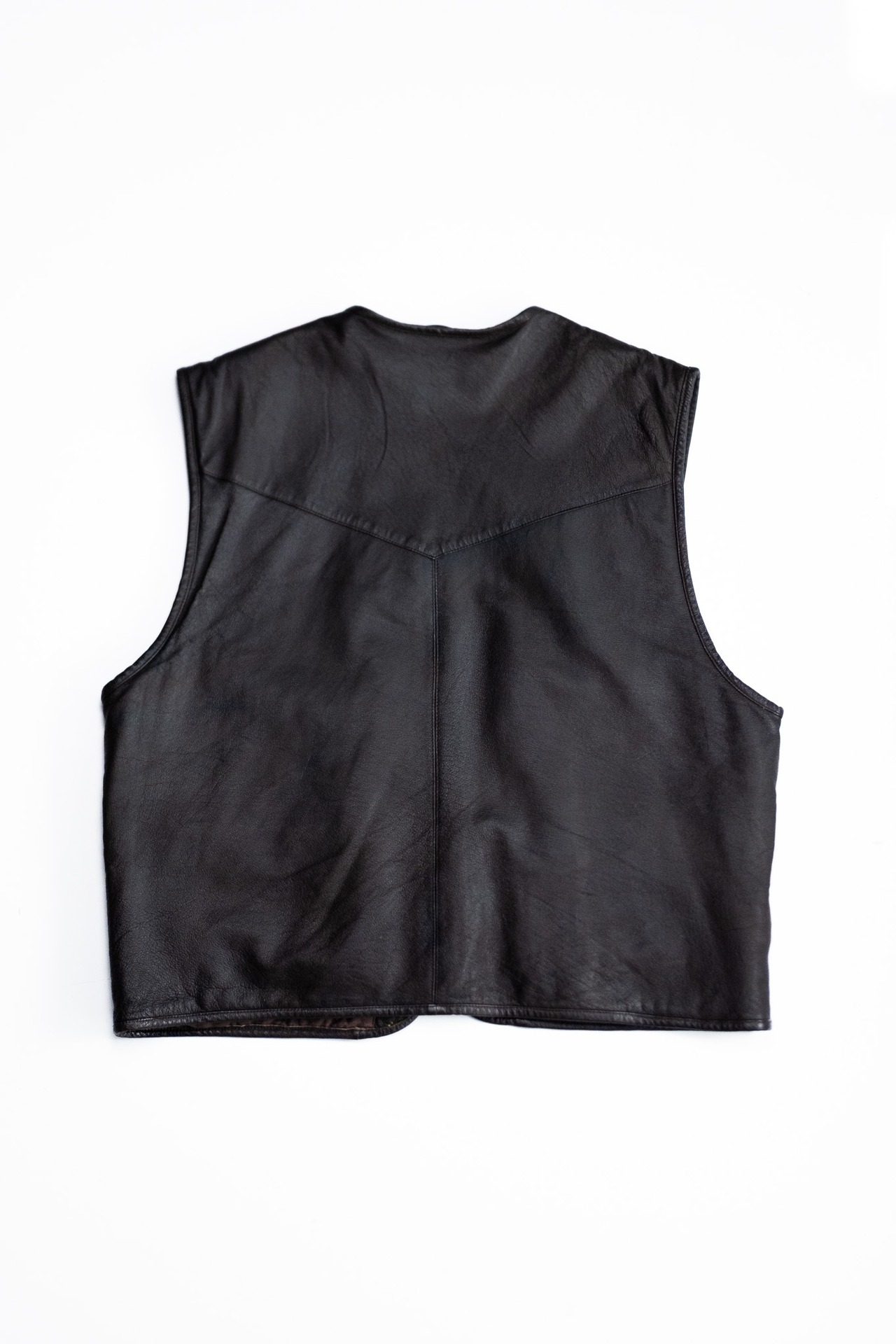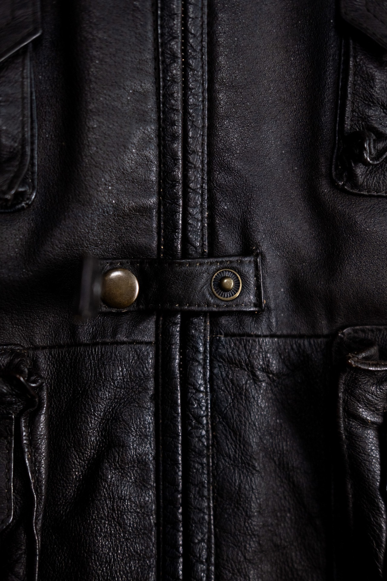 [1990’s ] "Italian Vintage" Cavenline Leather Flight No-Sleeve Jacket (Made in Italy)