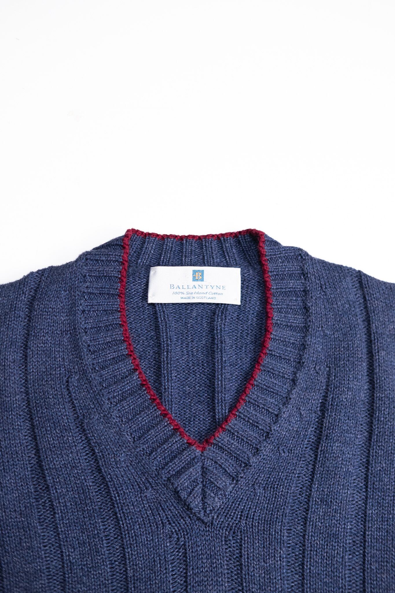 [Early 2000’s] “BALLANTYNE”Sea Island Cotton Heavy Rib V-Neck Knit(Made in Scotland)
