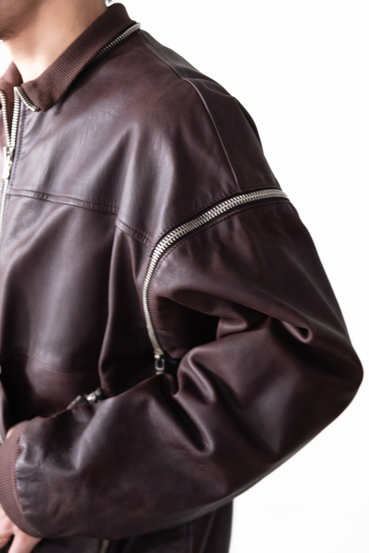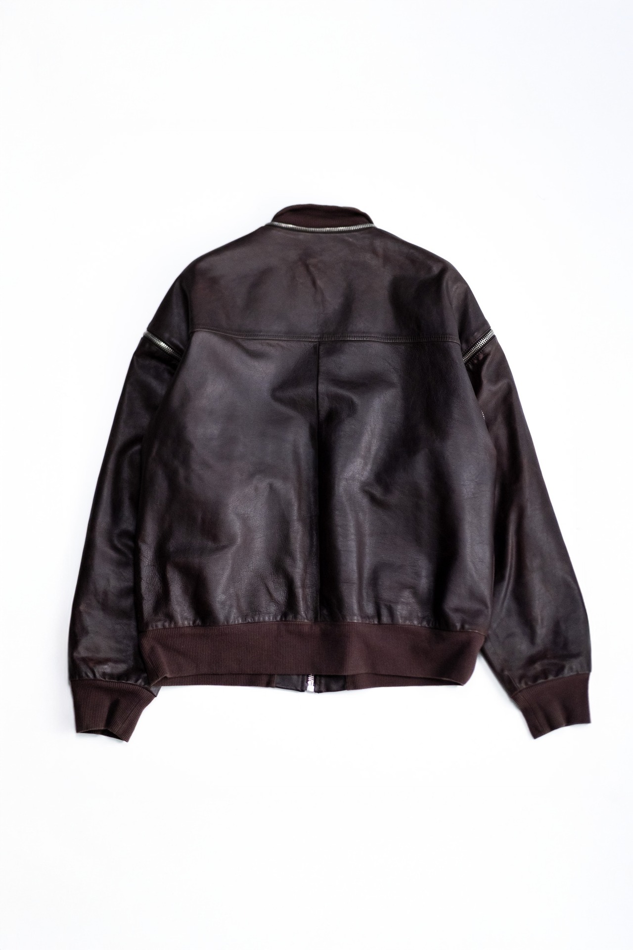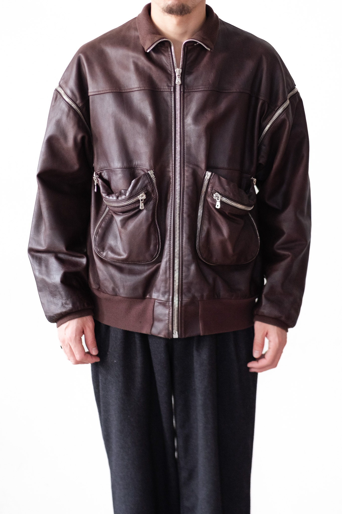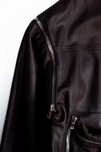 本作はまさにその思想を体現した一着。ジップによる可変構造とゴートスキンの柔らかな質感が、機能と美学を見事に融合させています。