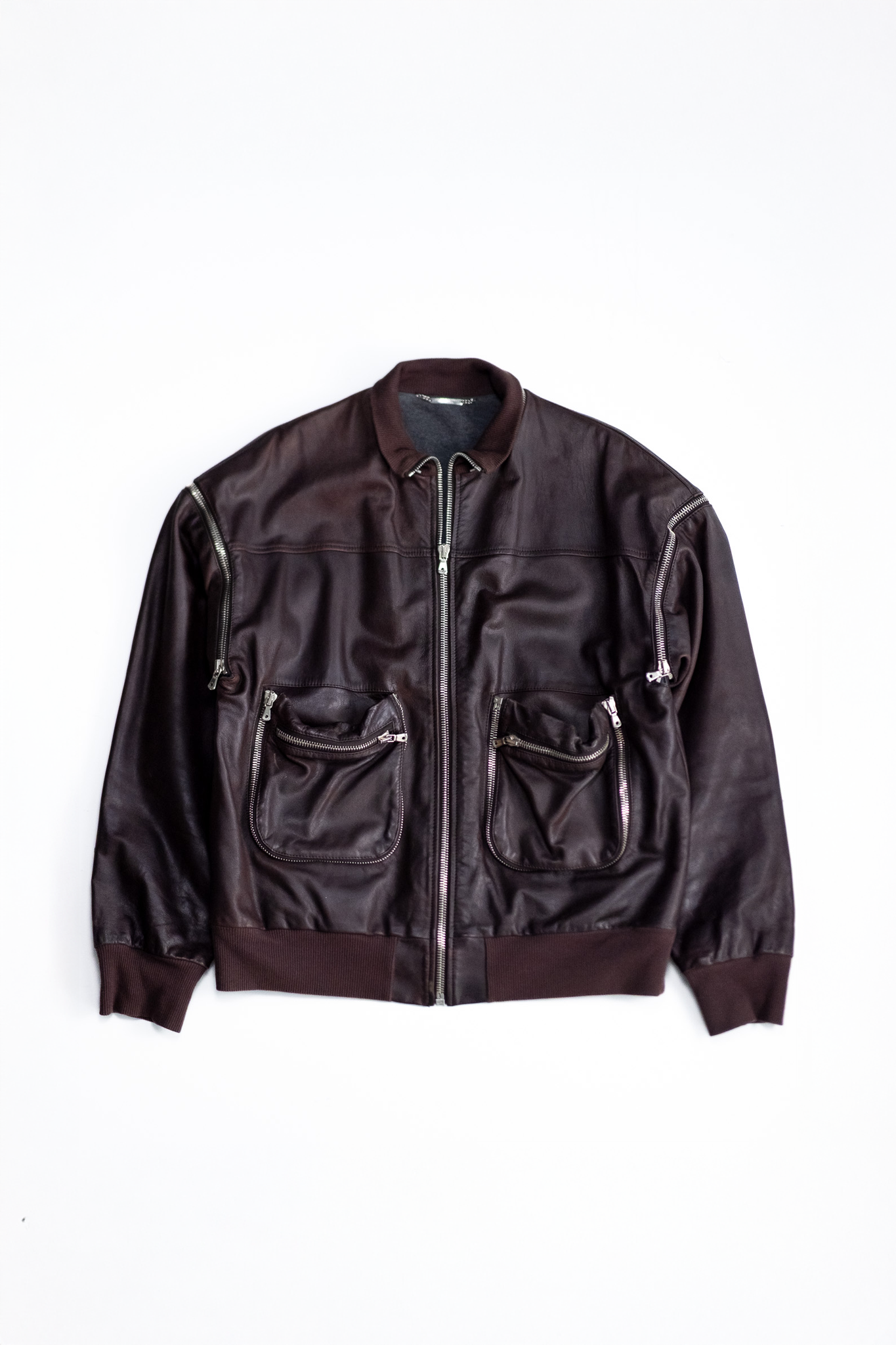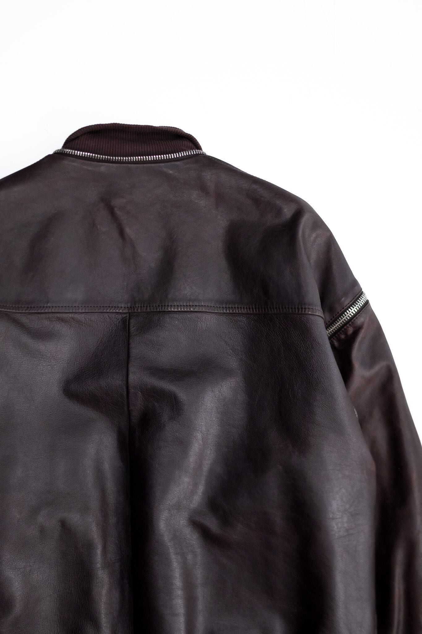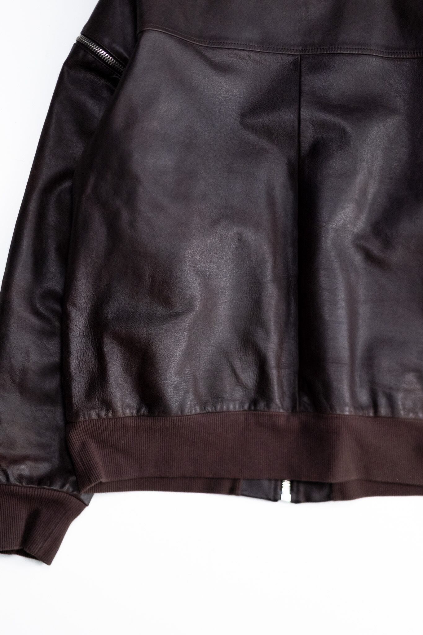 本作はまさにその思想を体現した一着。ジップによる可変構造とゴートスキンの柔らかな質感が、機能と美学を見事に融合させています。