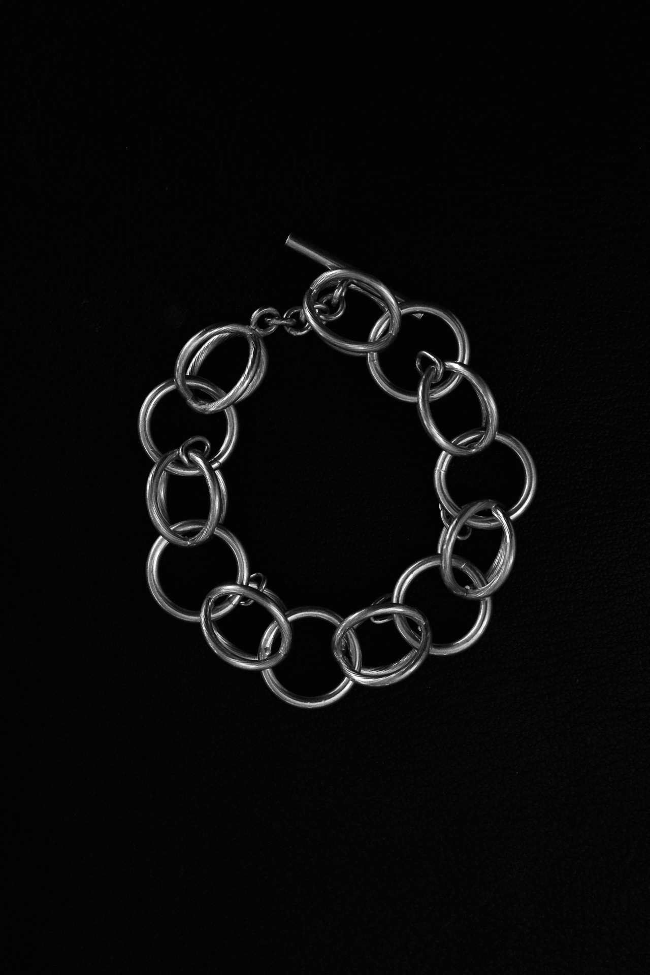 recollectionが重視するのは、装飾品が単なる“見せるもの”ではなく、“構築物”としての意味を持つこと。このブレスレットもまさにその理念を体現しています。整然とした円の連なりの中に、偶発的な交差が息づく。建築的な秩序と有機的な揺らぎが共存するこの一本は、静けさと力強さを併せ持つ、現代的な彫刻のようなジュエリーです。