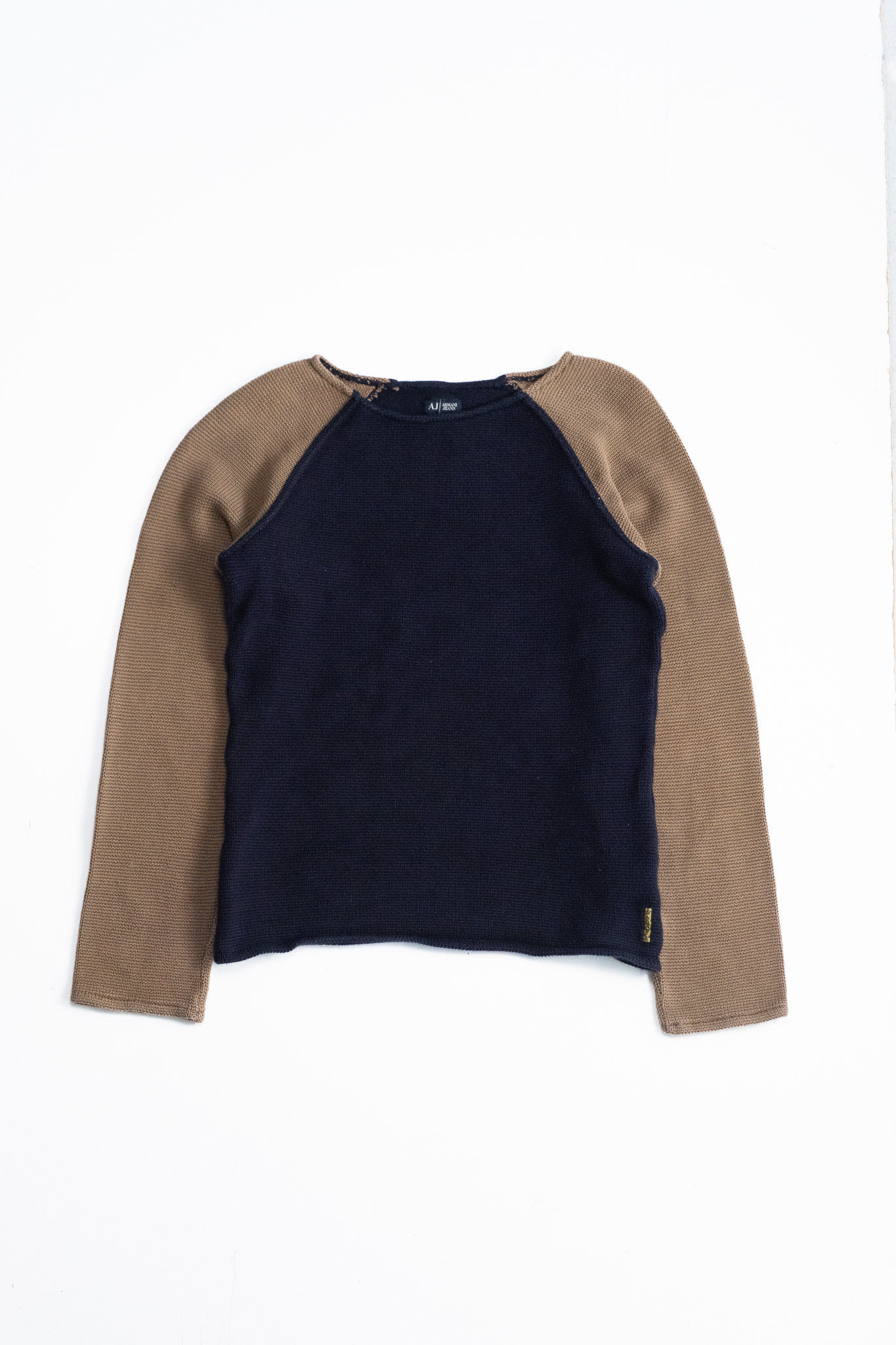 [Late 1990’s] “ARMANI JEANS” Two-Tone Cotton Raglan Knit (Made in Italy)