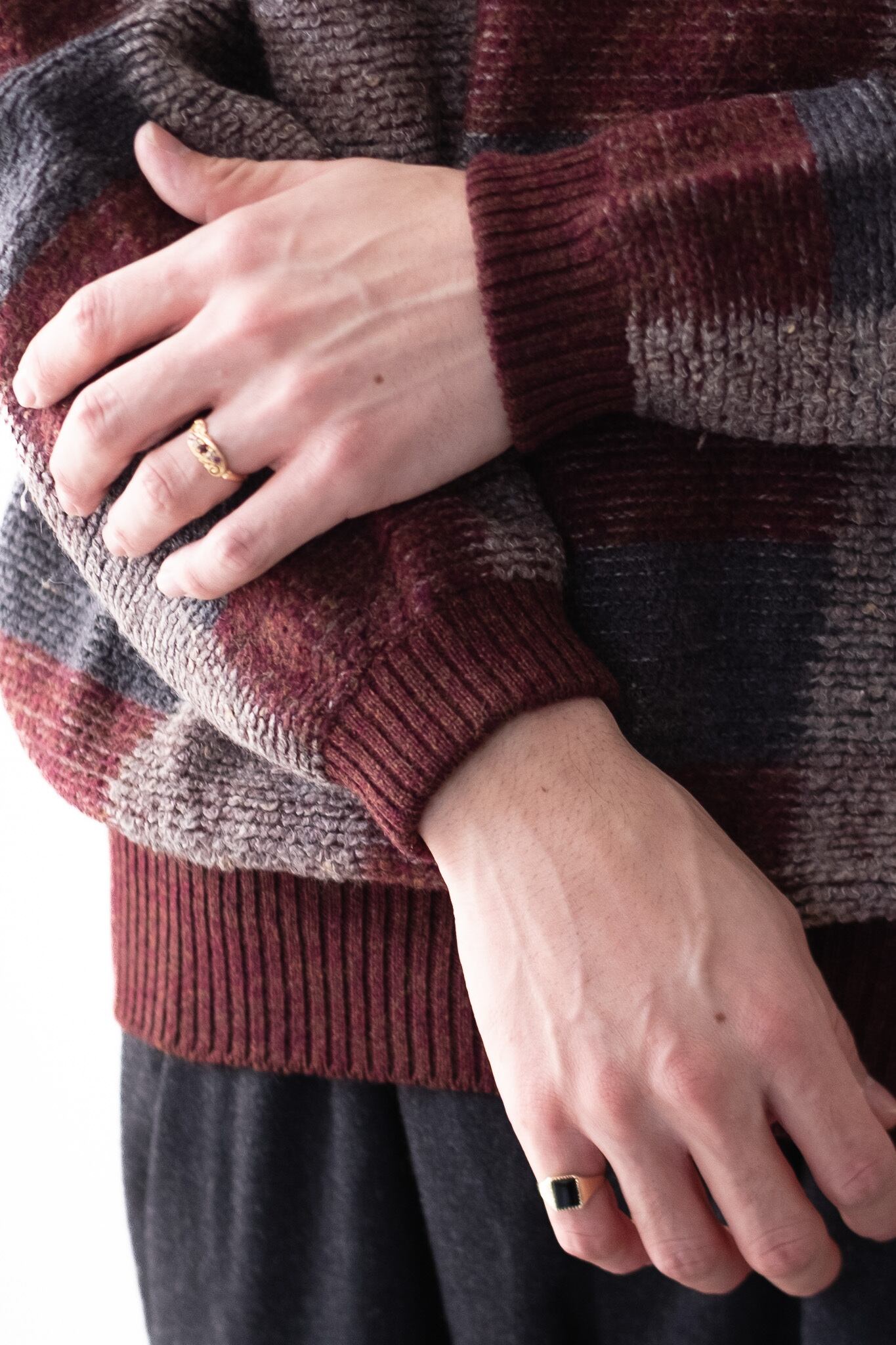 このニットもまた、デザインよりも“質感と構造”で語る服。