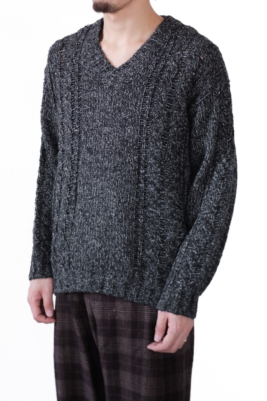その姿はどこかクラシックなフィッシャーマンニットを思わせつつも、
