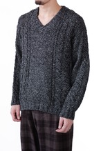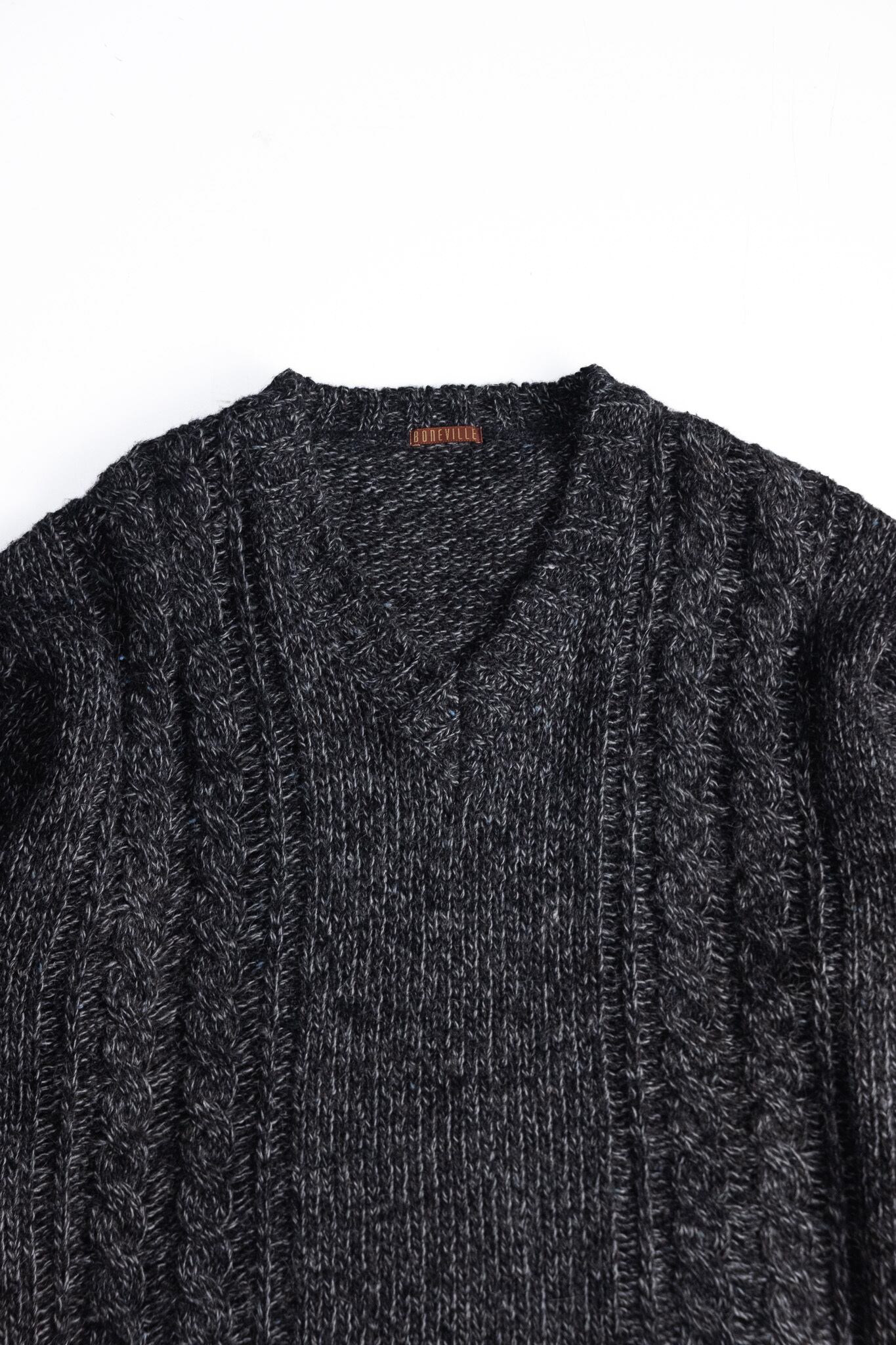 [Late 1980’s–Early 1990’s] “BONEVILLE” Wool-Alpaca Mélange Cable Knit V-Neck Sweater(Made by Massimo Osti)