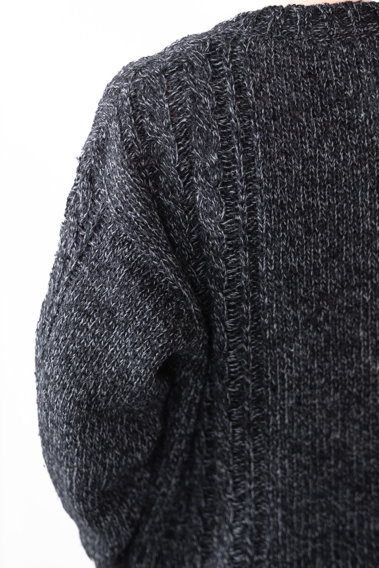 このニットはその思想がもっとも柔らかな形で結実した例です。