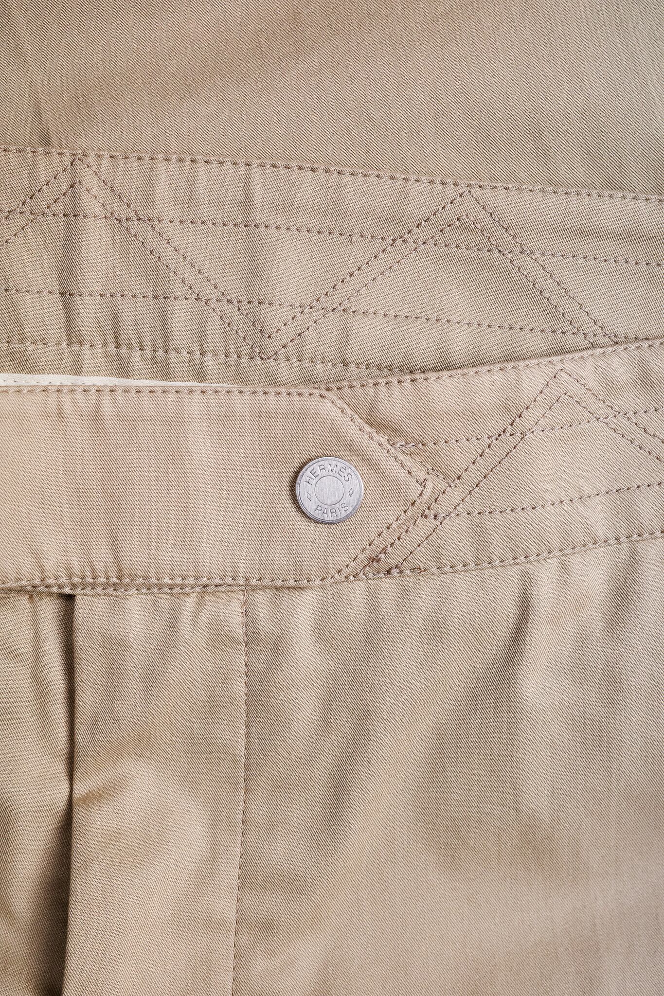 [Early 2010's] “HERMÈS” Technical Cotton Twill Trousers with Geometric Waist Stitch -deadstock- (Designed by Véronique Nichanian)