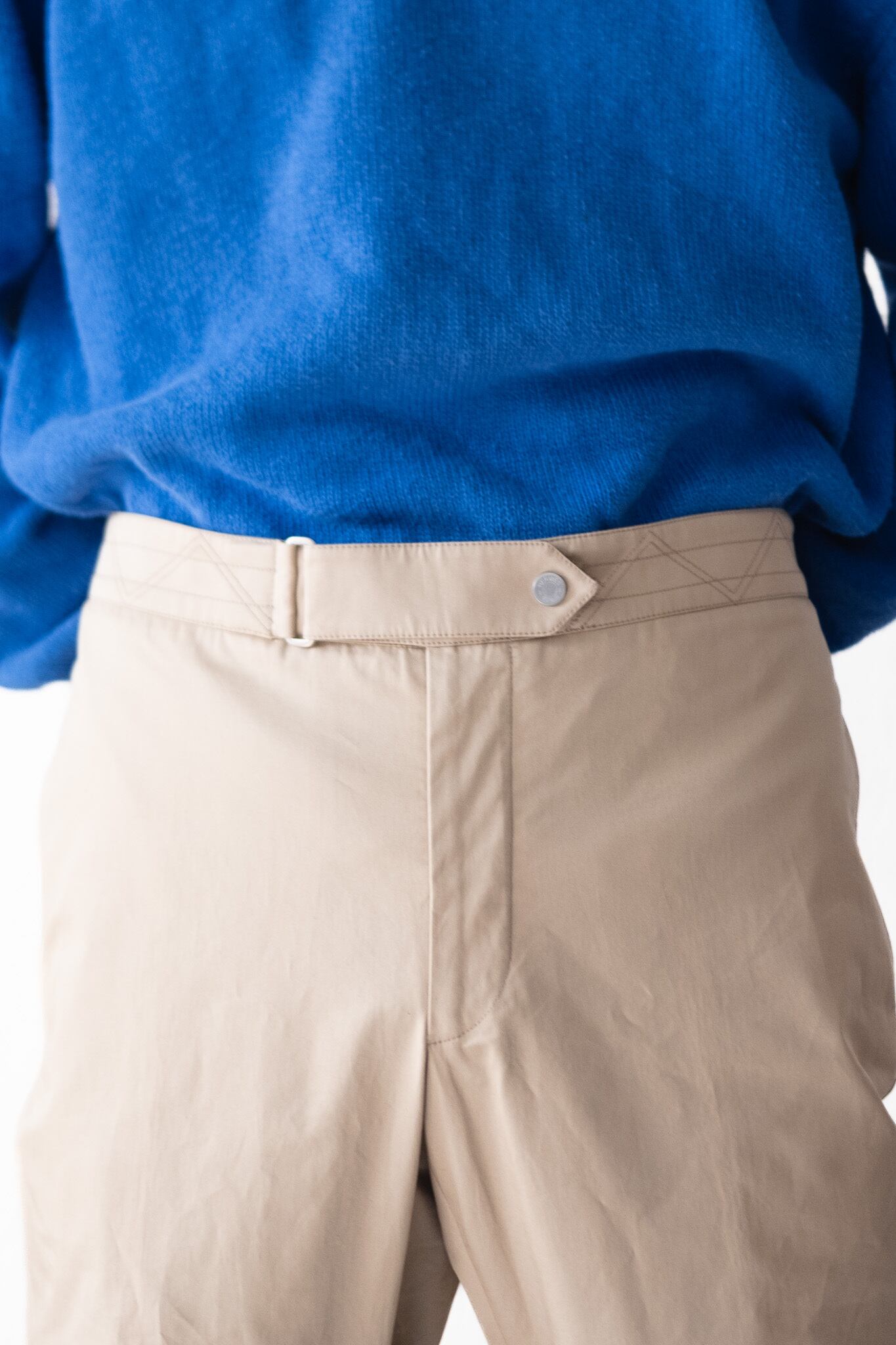 立体的に設計された腰帯と股ぐりが、身体の動きに合わせて自然に形を保つ。