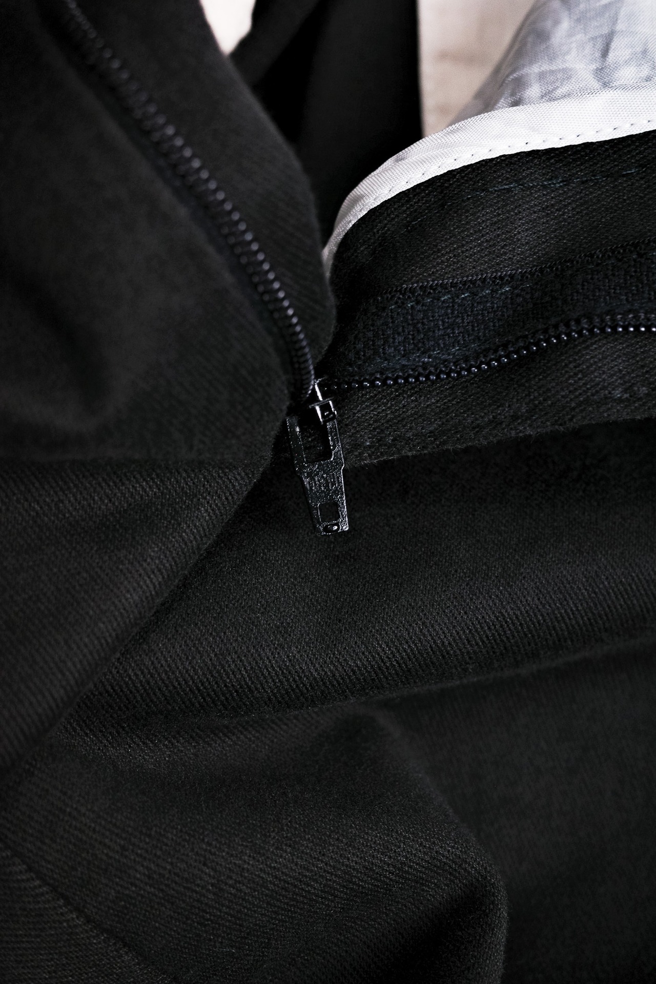 まるでウールトラウザーズのような緊張感にまで引き上げている。