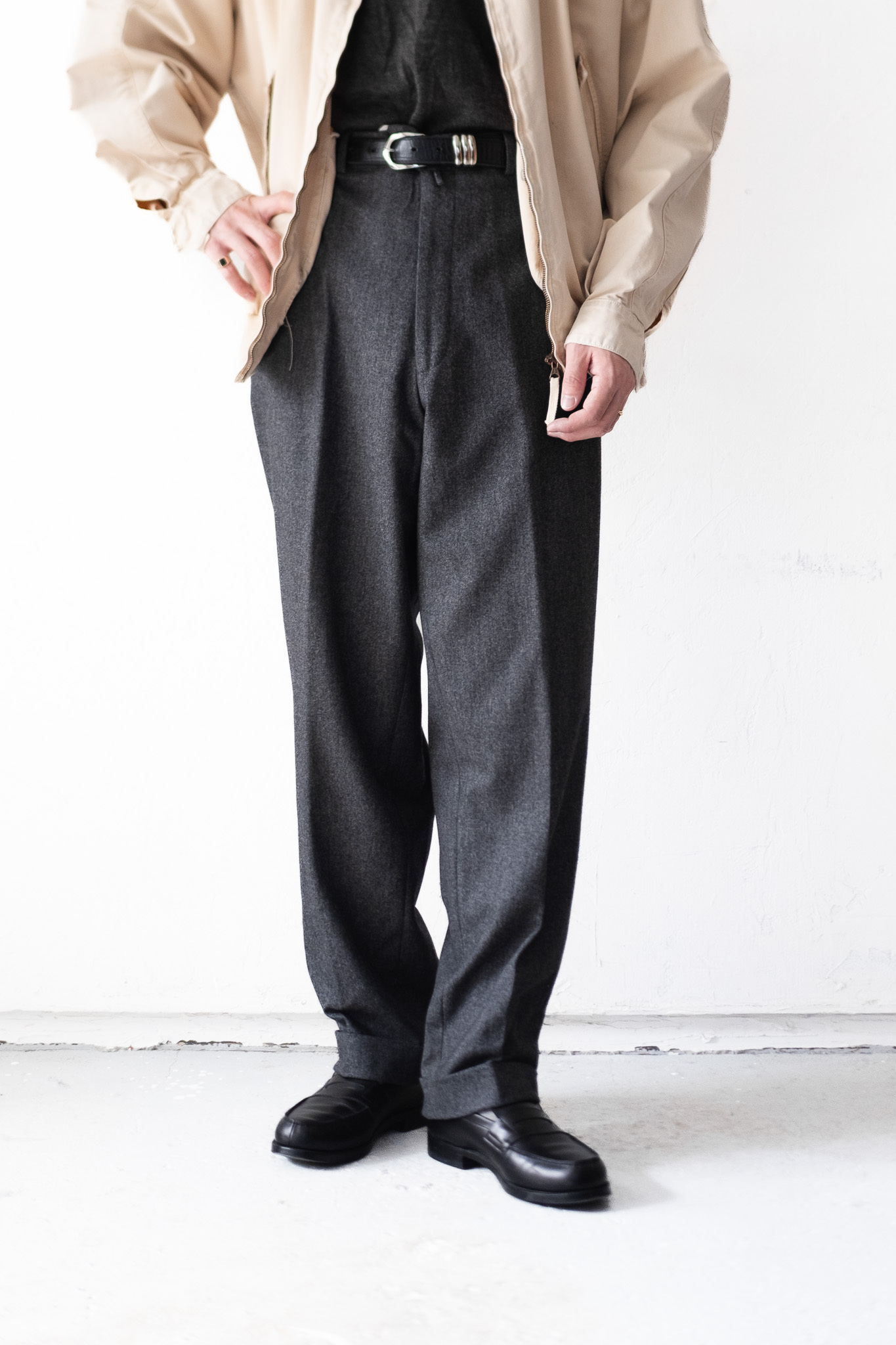 股上は深く、腰まわりにはゆとりを、裾にかけては自然なテーパード。