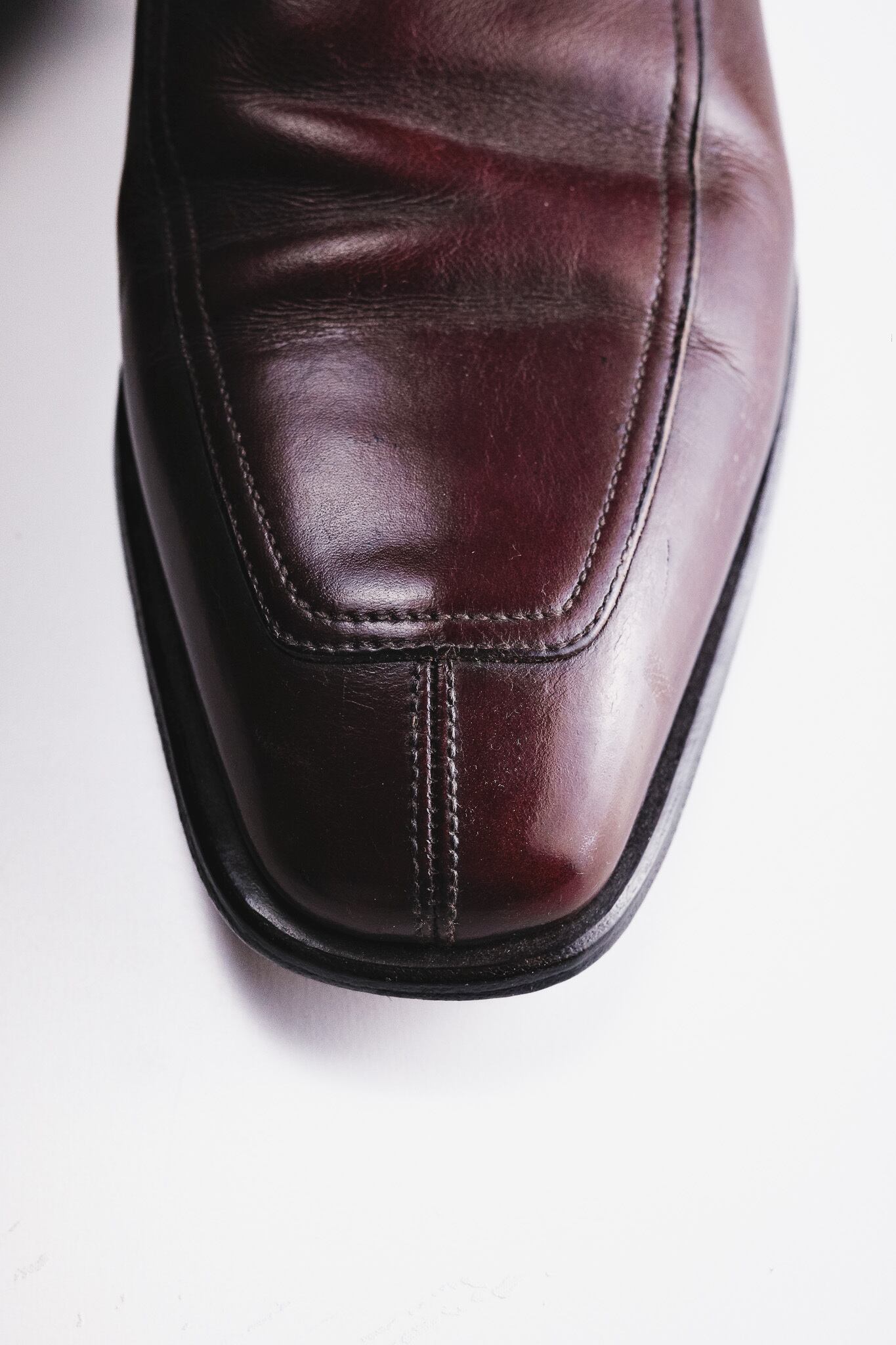 スクエアトゥ気味のロングノーズは、90年代末から2000年代初頭のモードな空気を取り入れつつも、誇張を排したバランス設計。細身でありながら構築的に足を包み込み、スタイリングを選ばず現代的な落ち着きをもたらします。