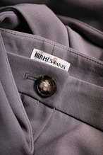 このパンツの比翼仕立て、ホーンボタンひとつの留め、