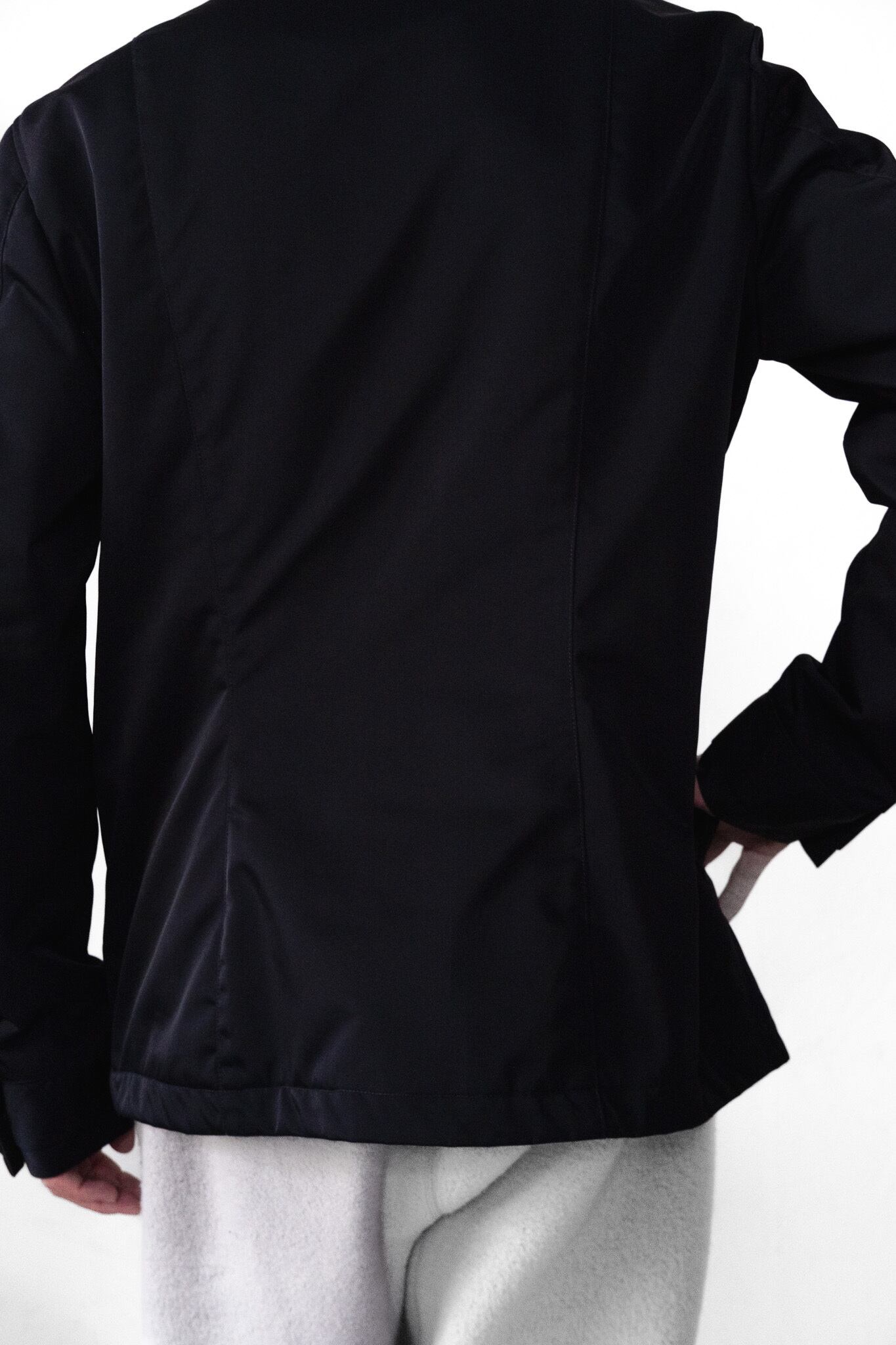 まるでテーラードジャケットの内部構造を、そのままテクニカルファブリックへ移植したかのような立体感です。