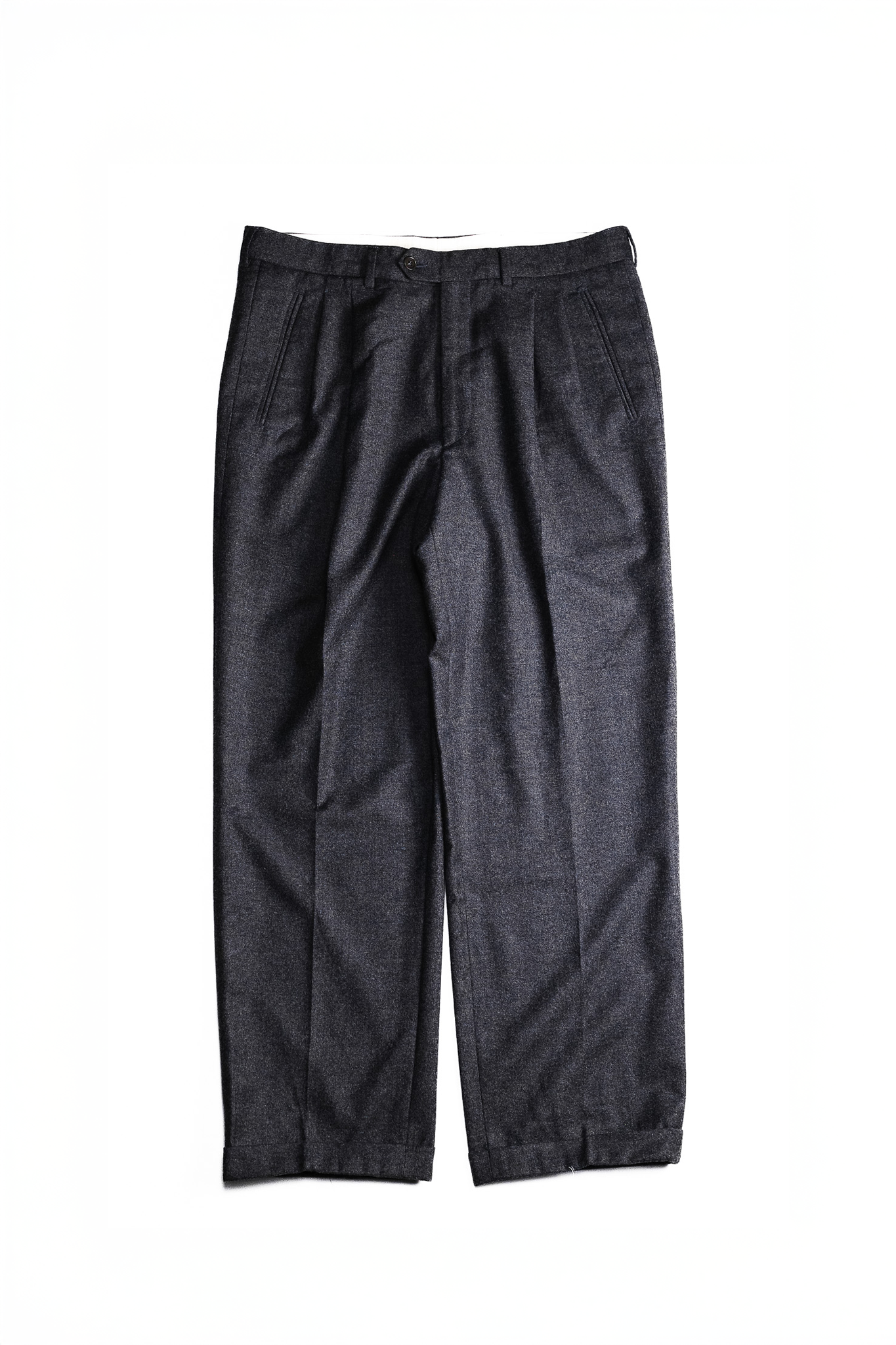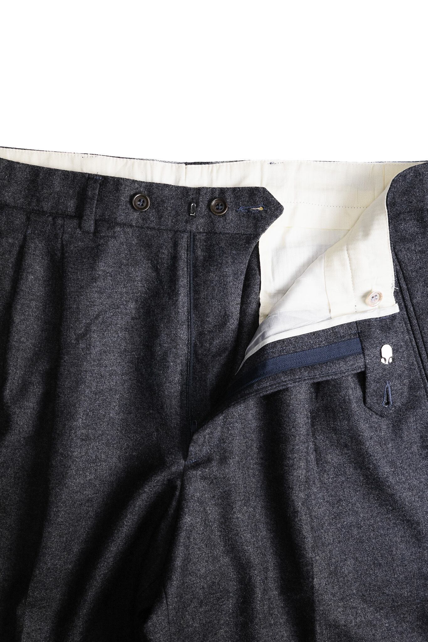 [2000’s] “Loro Piana Fabric” Wool × Cashmere Flannel Tailored Trousers – Made in Italy(90% Wool / 10% Cashmere, Super 100’s)