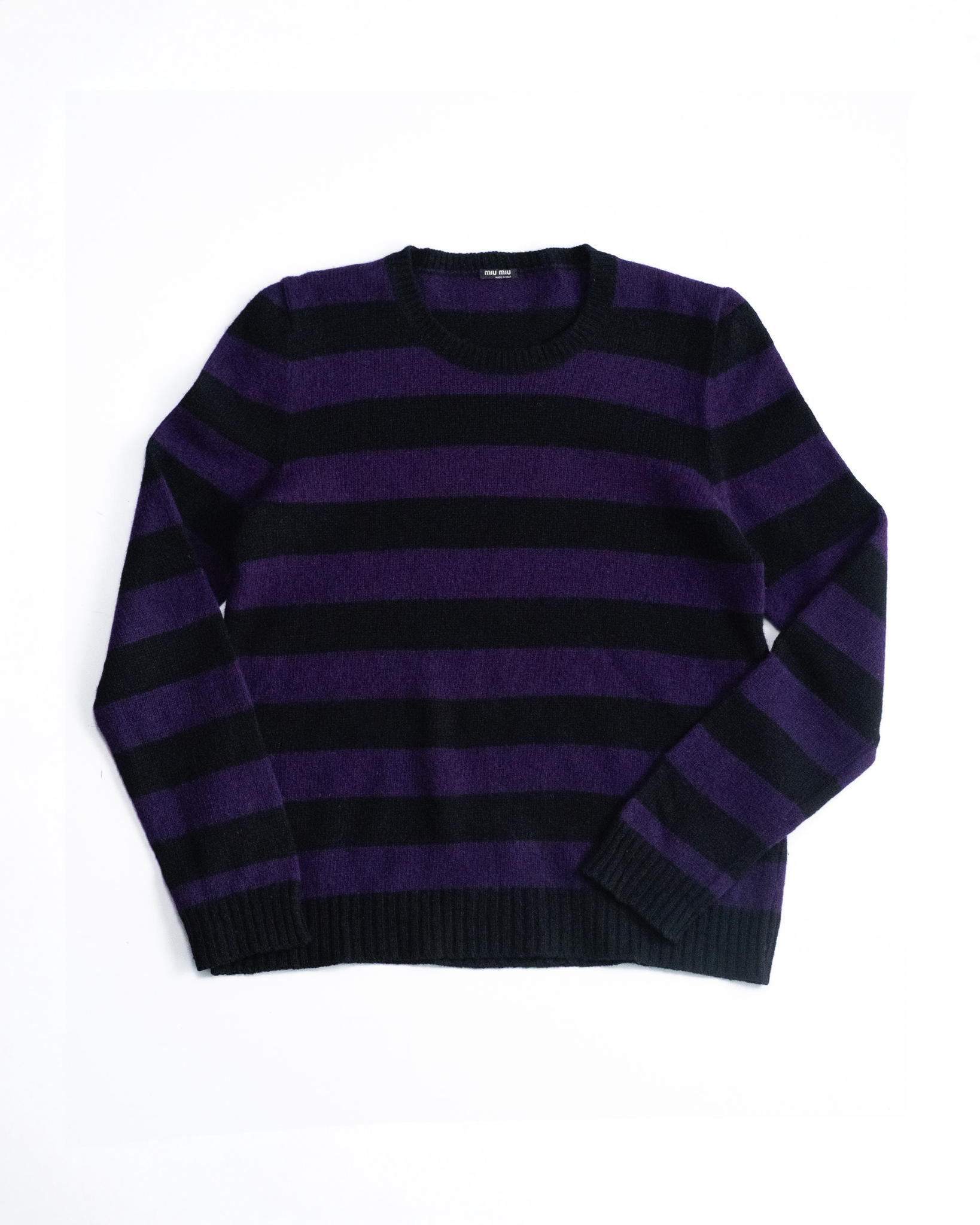 [Early 2000's]"miu miu Men" Stripe Designed Wool Knit Sweater (Designed by Miuccia Prada)