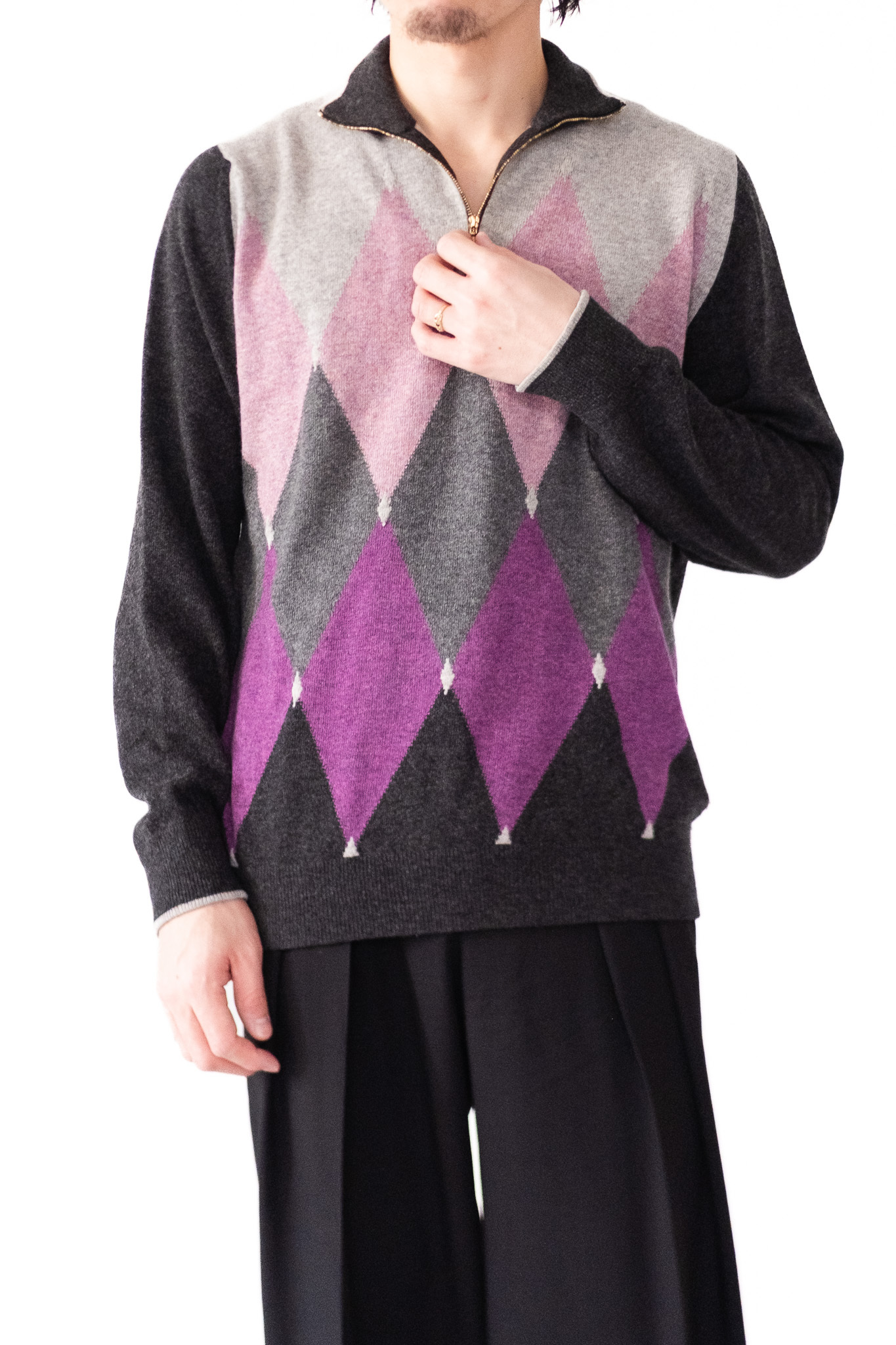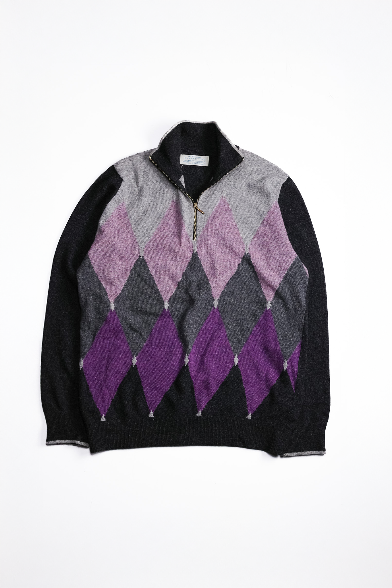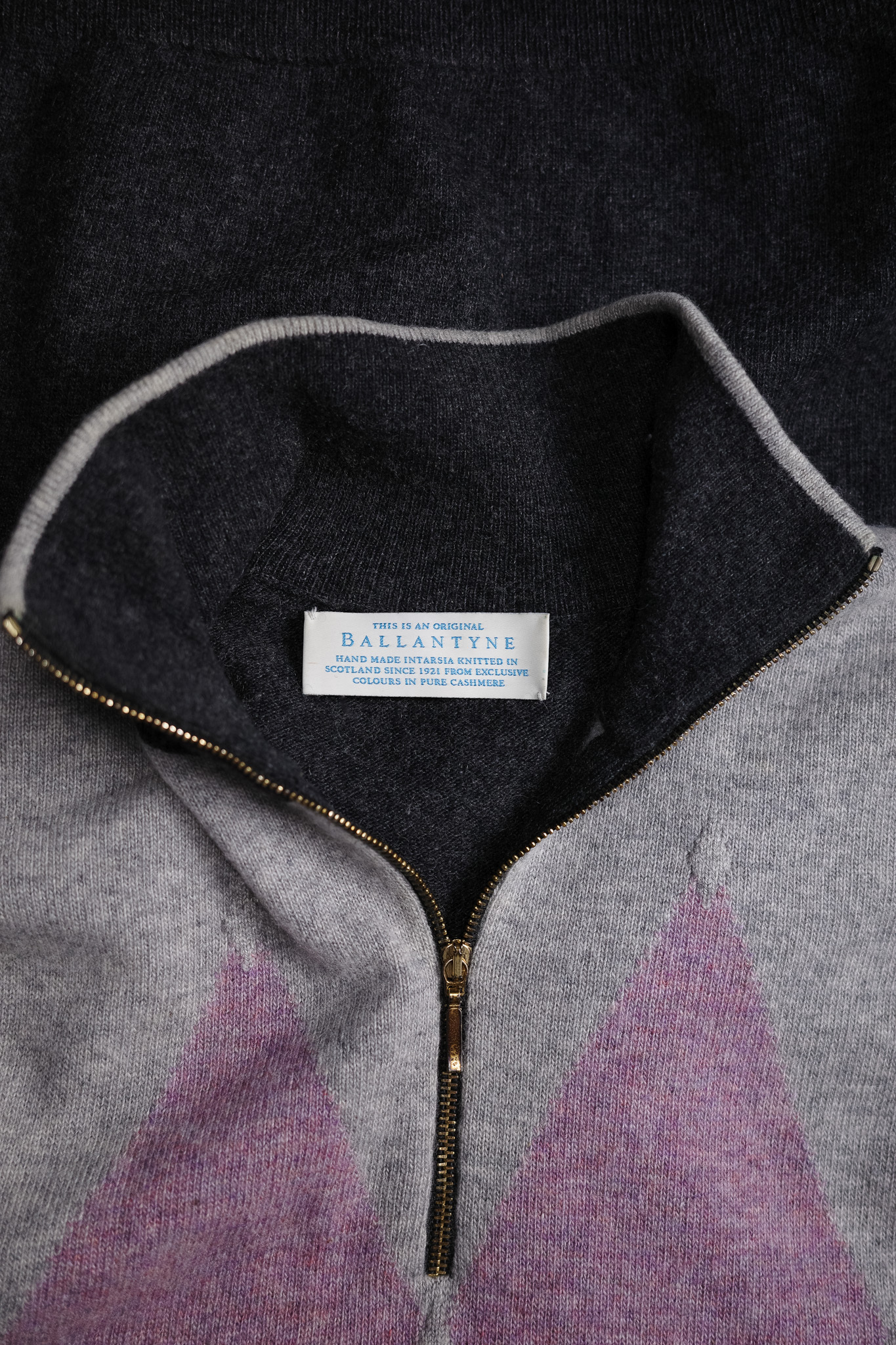 [Late 1990’s – Early 2000’s] “BALLANTYNE” Intarsia Cashmere Half-Zip Sweater – Made in Scotland