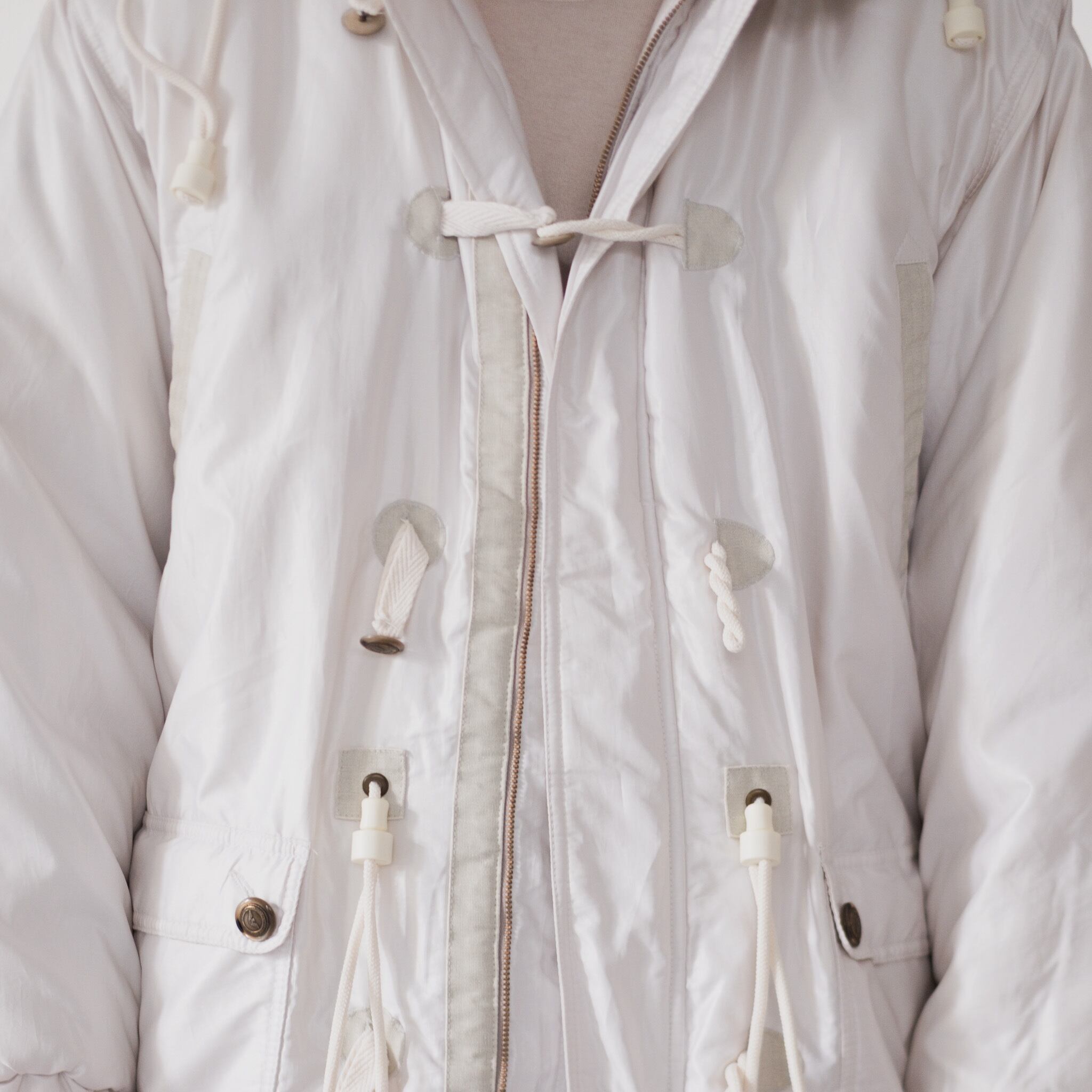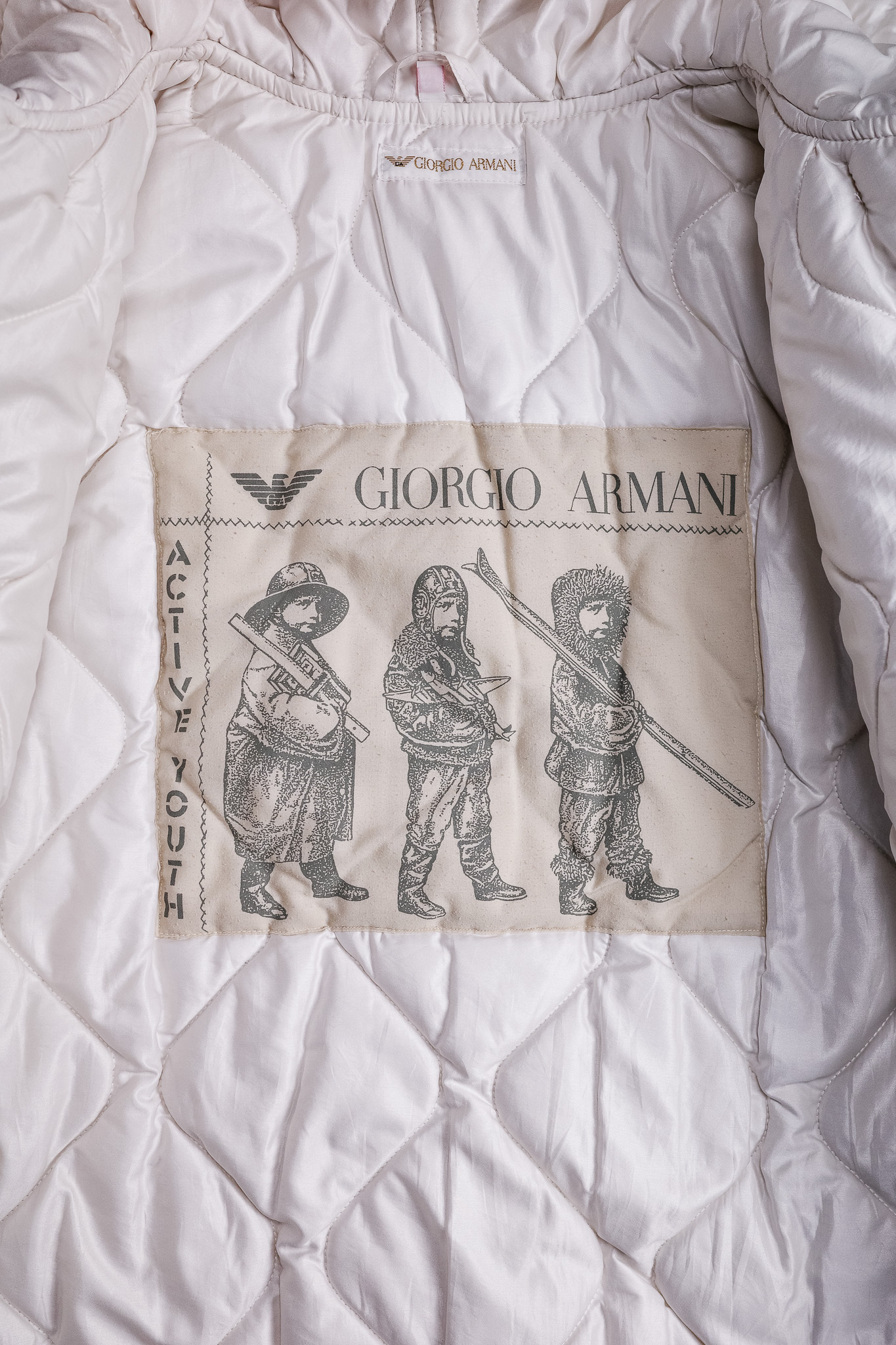 本作は、Giorgio Armani が展開していたアクティブウェアの小規模カプセルコレクションの一つとして製作されたパデッドコートです。
