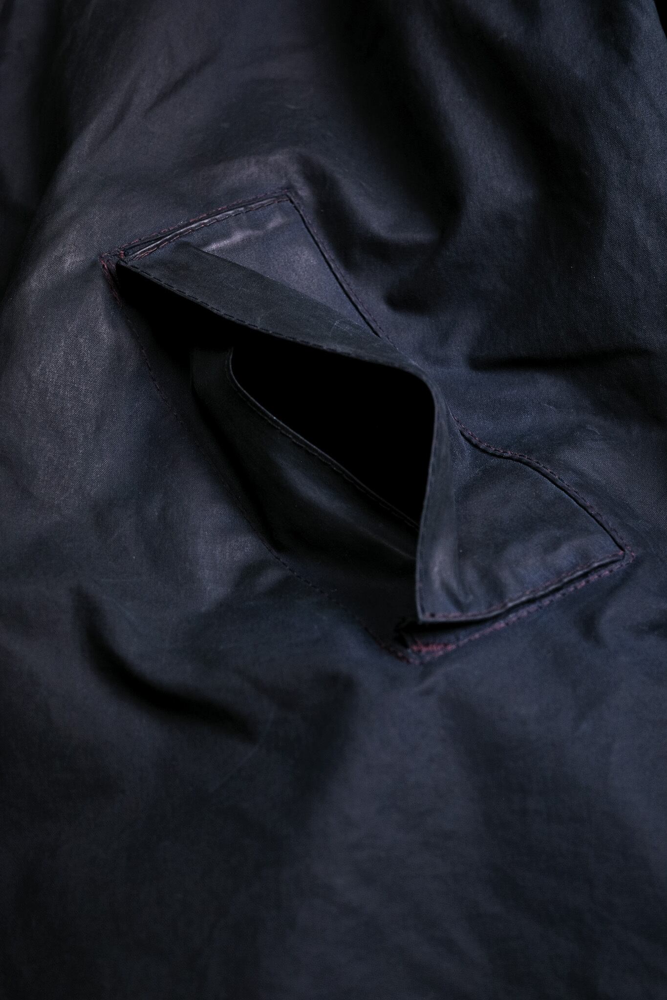 裾のドローコードは風の巻き込みを軽減し、内側のゲーター構造はワックスコットン特有の湿度を逃しつつ、冷気は遮断するという当時ならではのアイデア。
