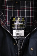 ライニングはネイビー基調のクラシックタータン、ジップはバブアー刻印入りリングプラー、ブラスのダブルジップと、当時を象徴するディテールも非常に良好な状態です。