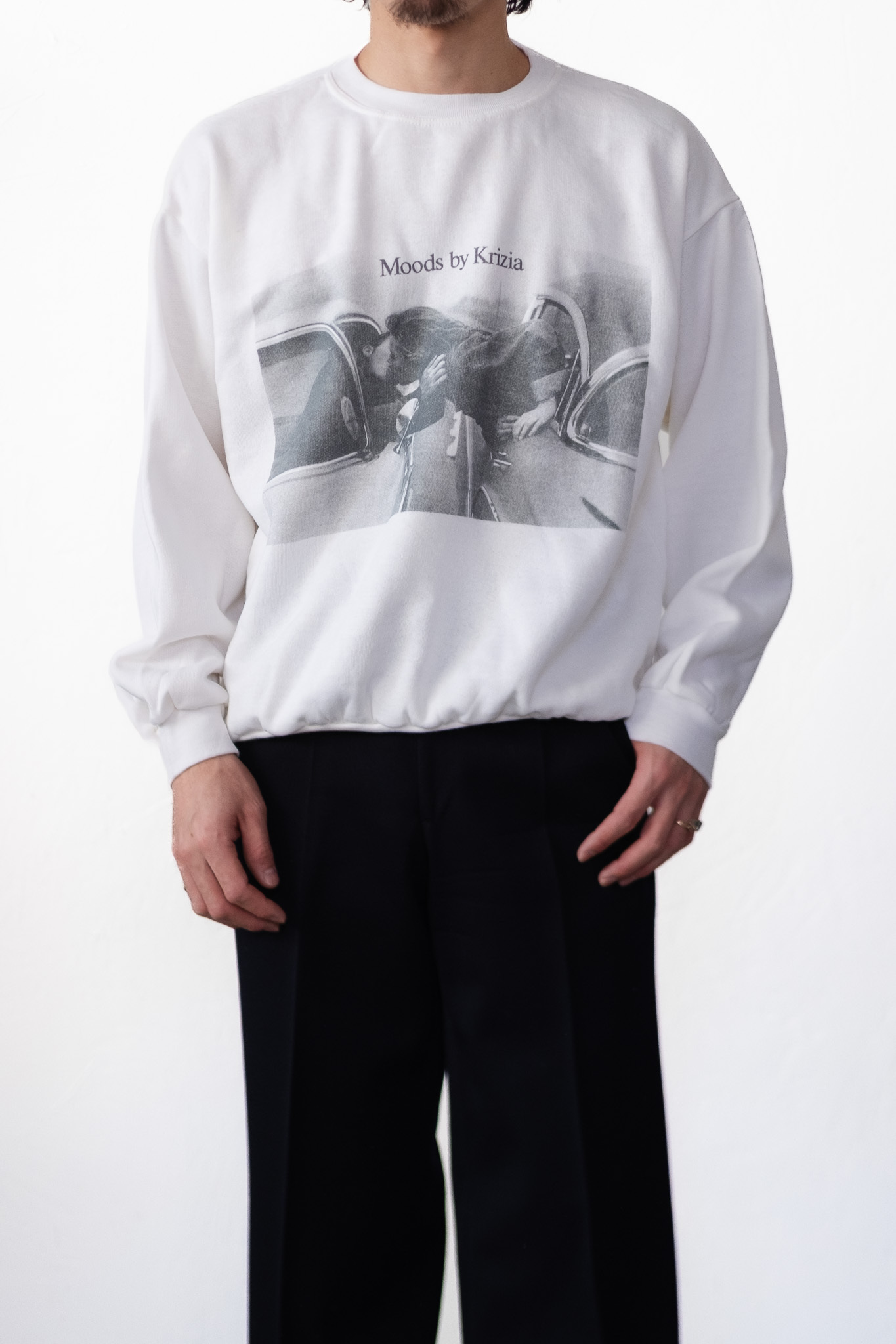 [1990’s] "MOODS by KRIZIA PARFUMS" Photo-Print Fleece Sweatshirt -Made in Italy(Body by NEW ECO)