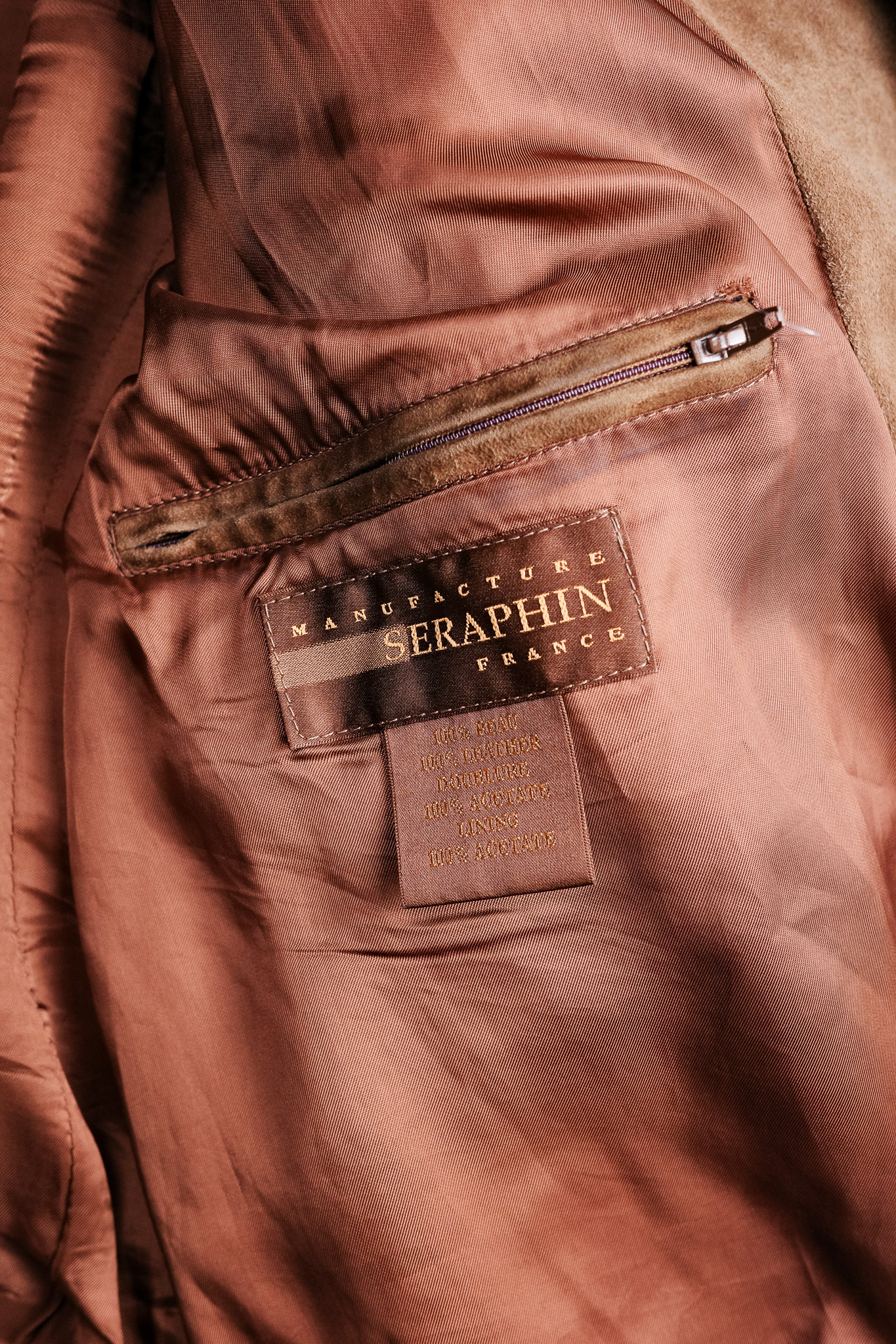 古い年代の〈MANUFACTURE SERAPHIN / FRANCE〉タグ、riri M6 ジップ、均整のとれたパターン。いずれもSERAPHINが品質に妥協しない時期の個体に見られる要素です。