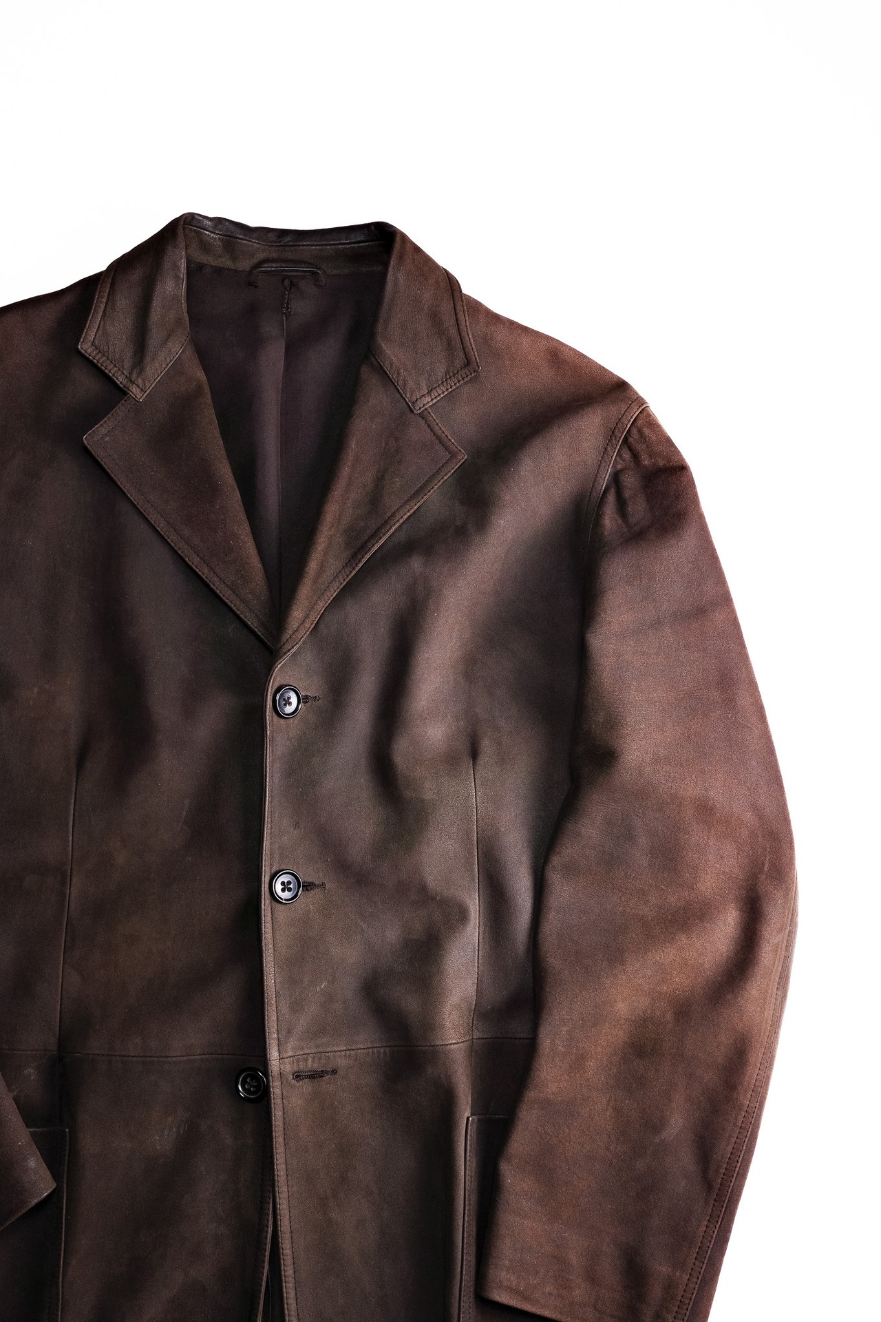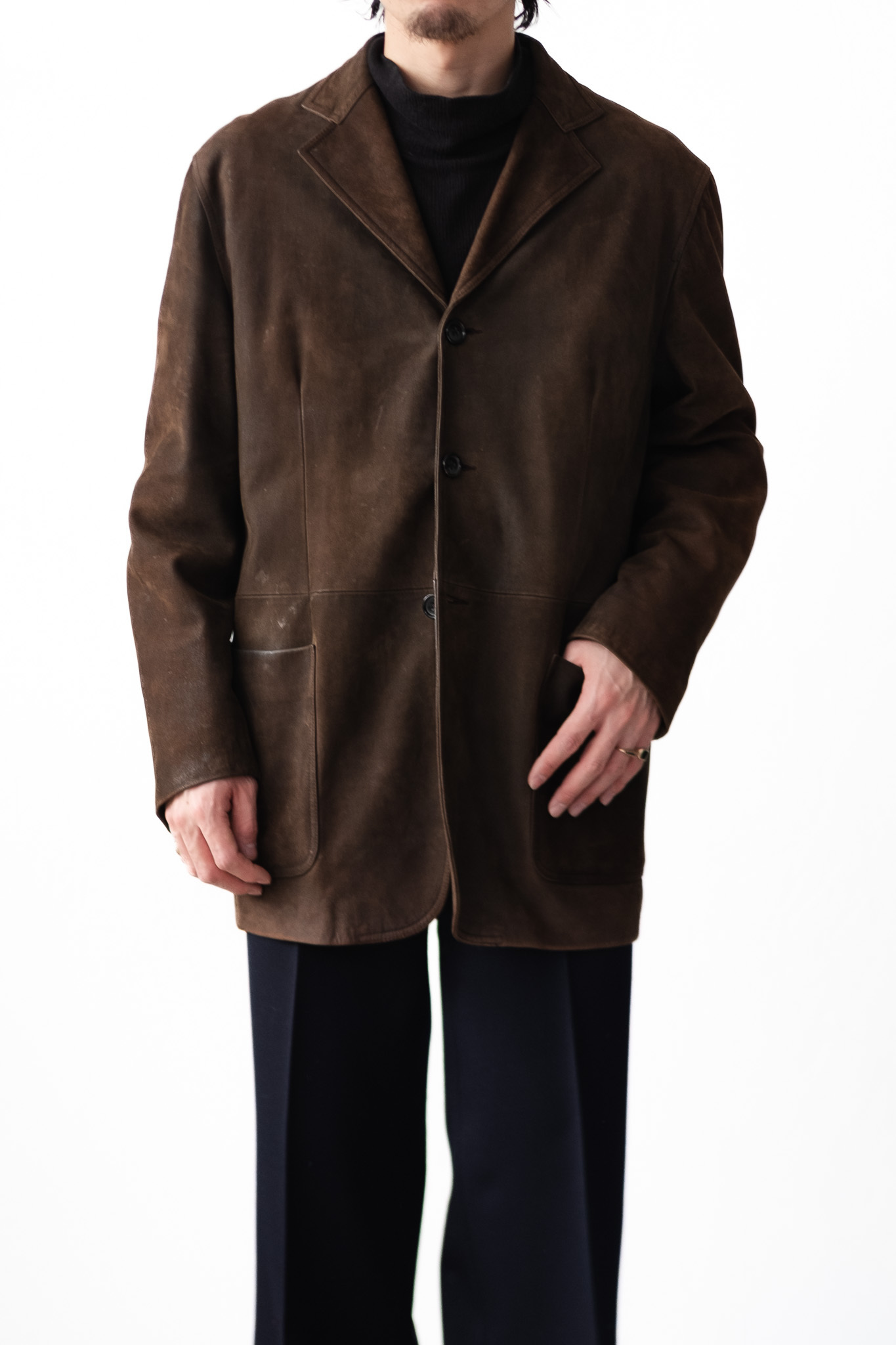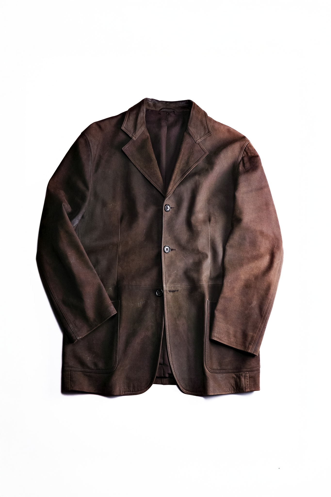 [Early 2000’s] “JIL SANDER” Reverse-Nappa Leather 3-Button Jacket (Designed by Jil Sander/Made in Italy)