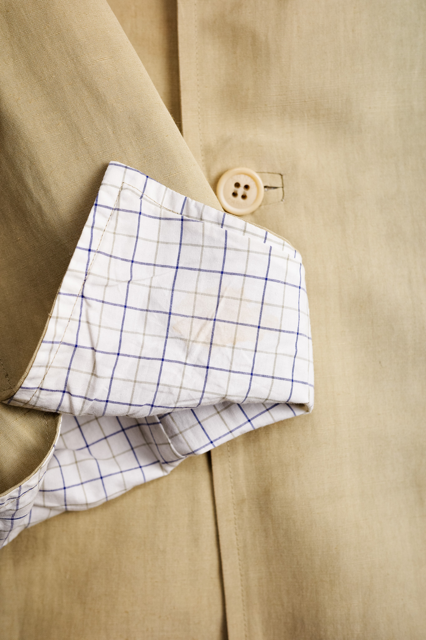 袖裏のチェックライニングに僅かな汚れが見られます。