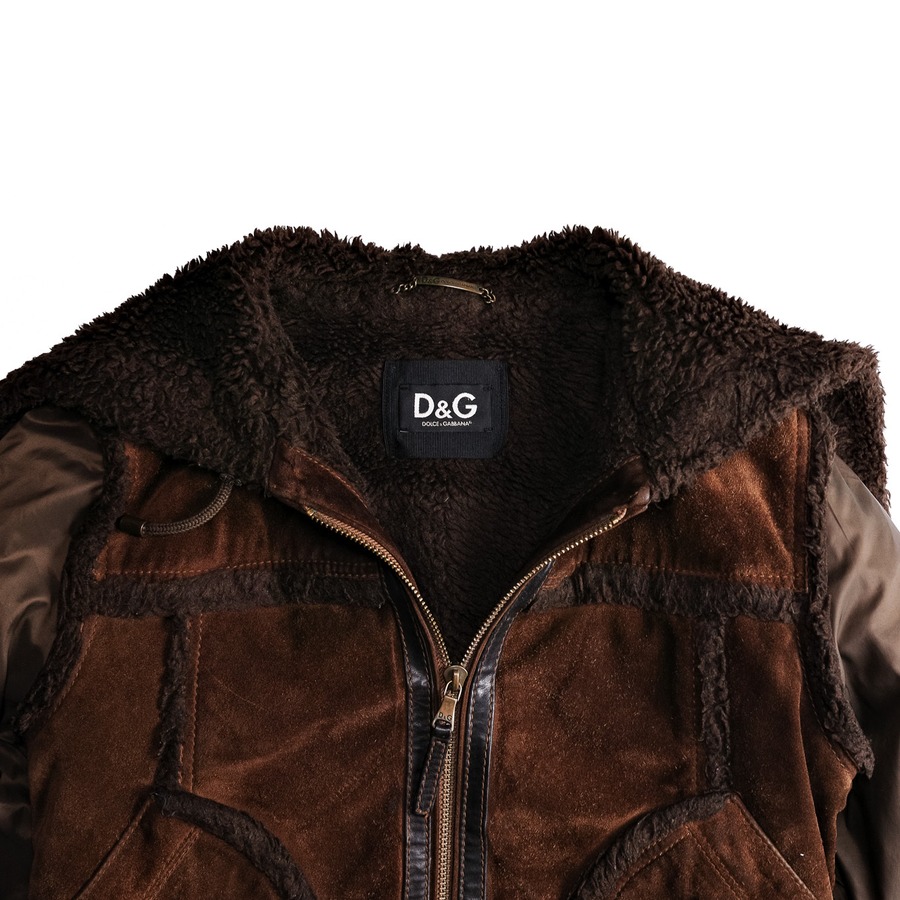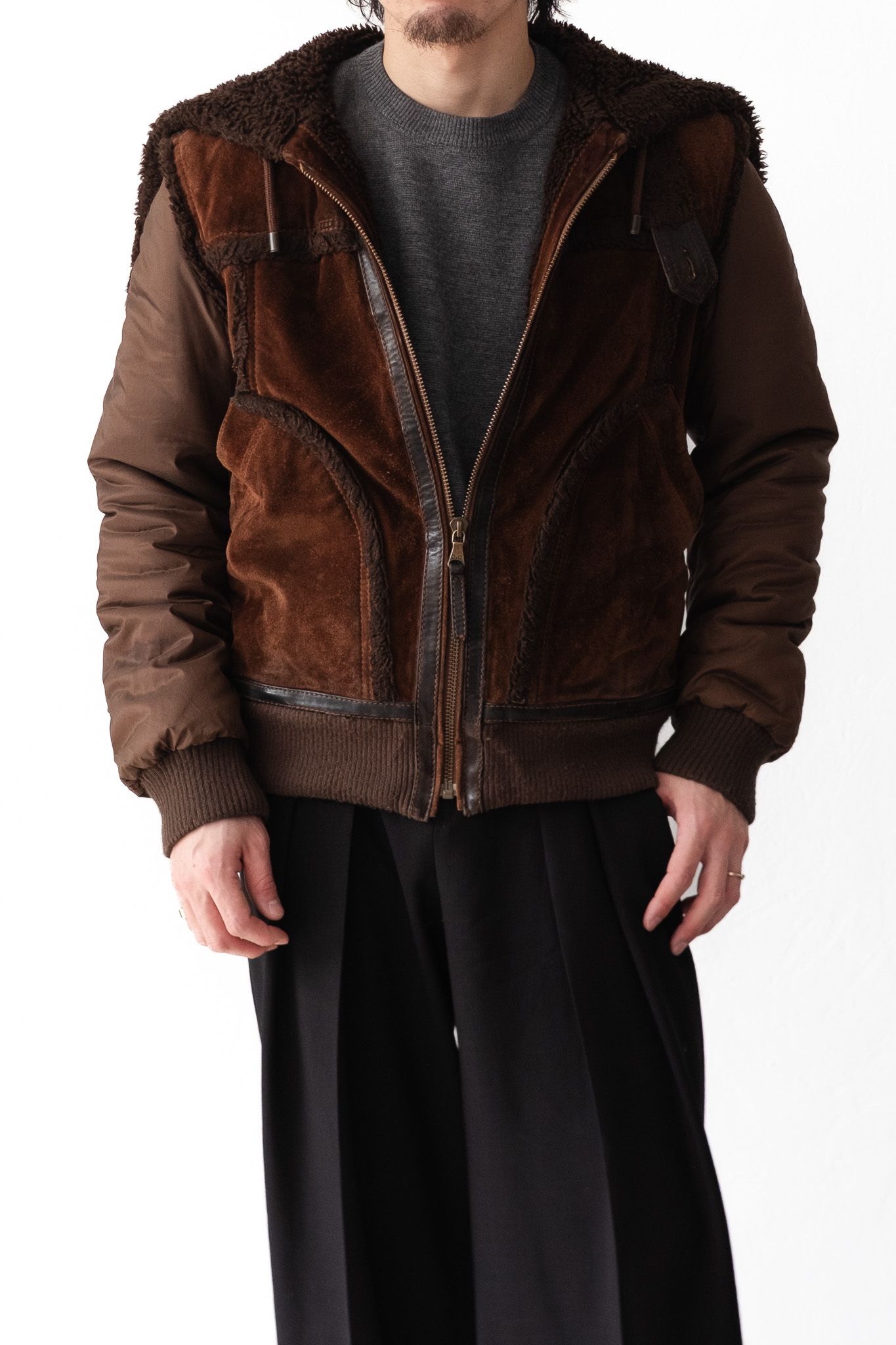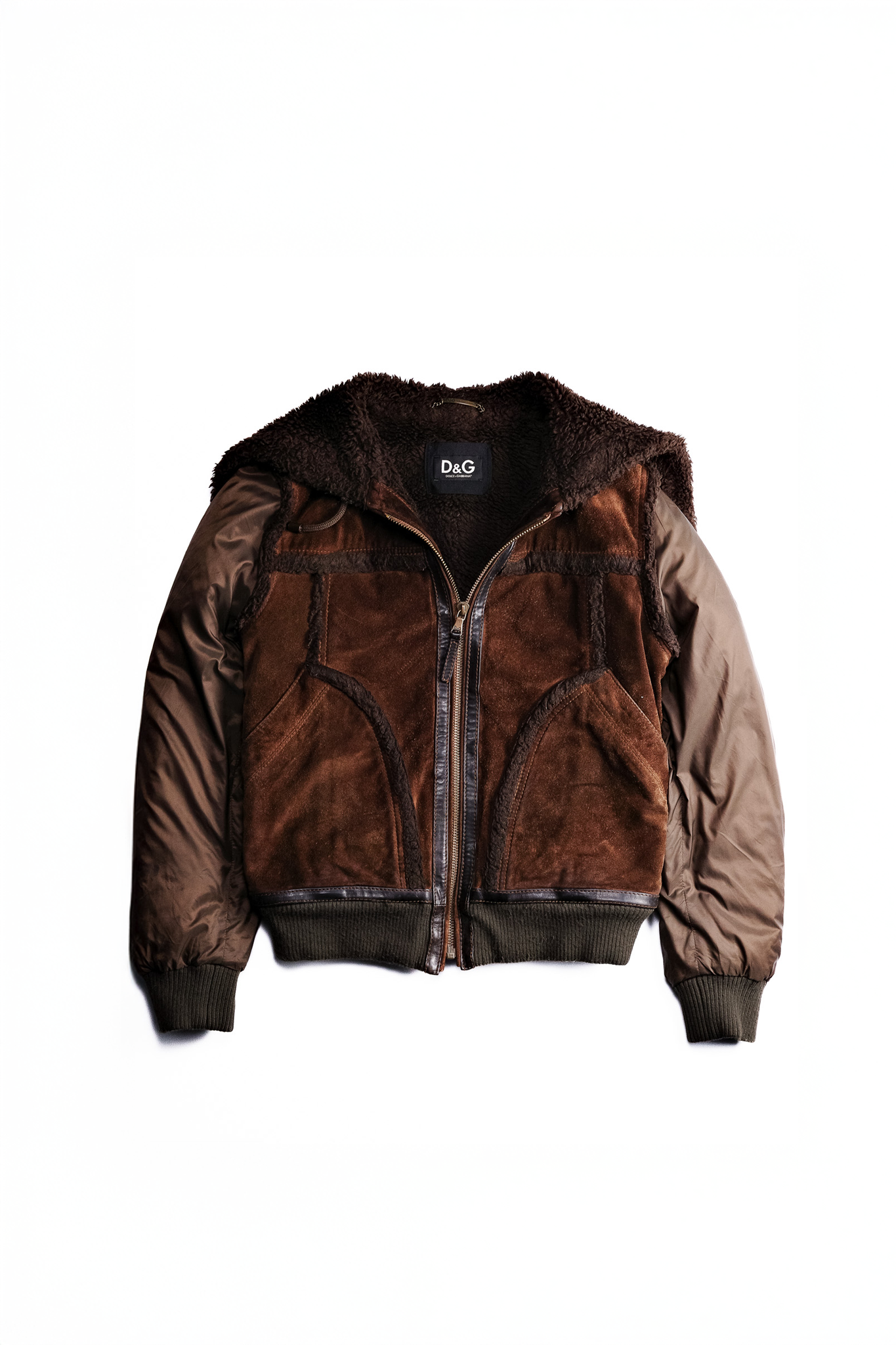 [Early 2000’s] “D&G” Leather Body × Puff Sleeve Hooded Jacket (Made in Italy)