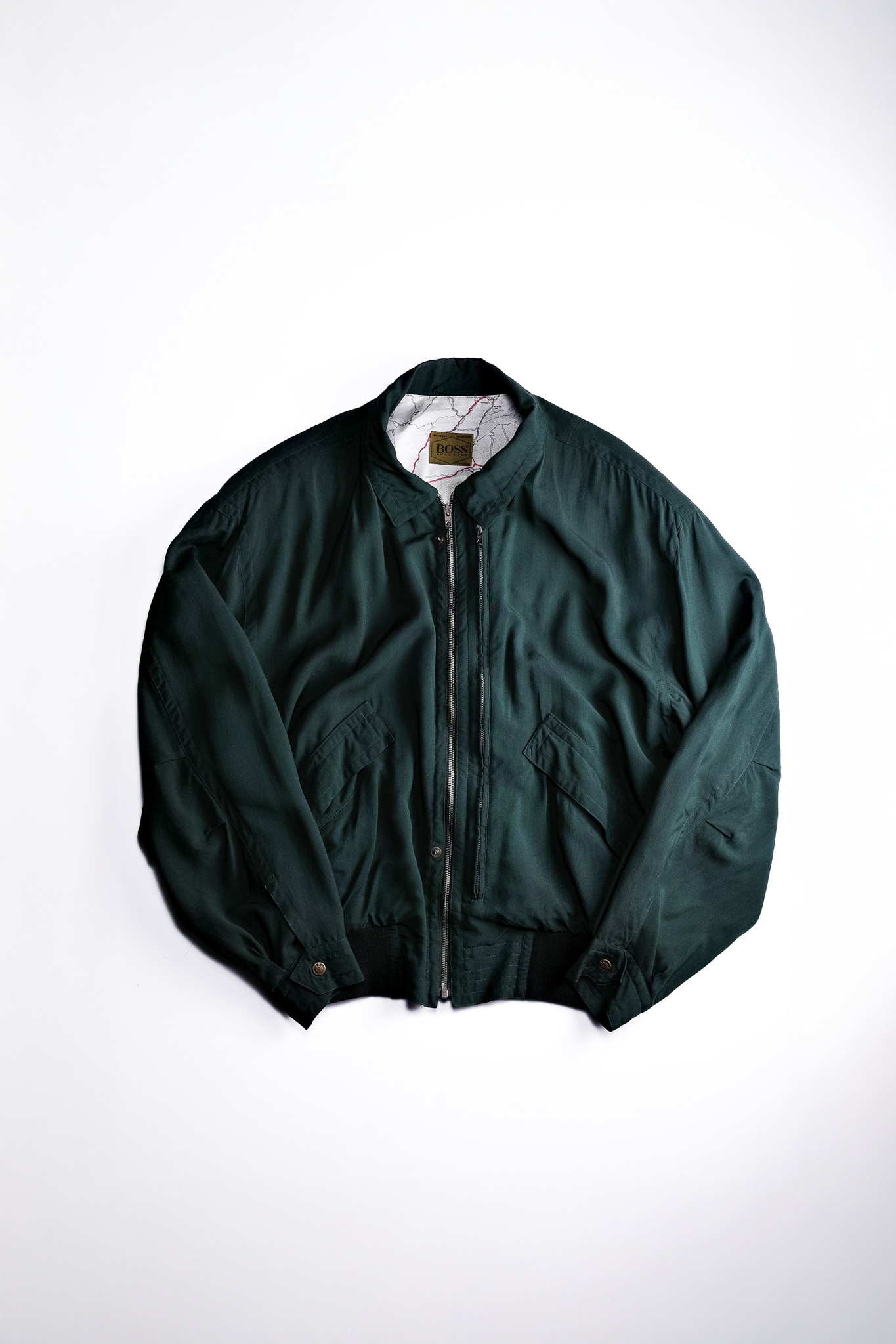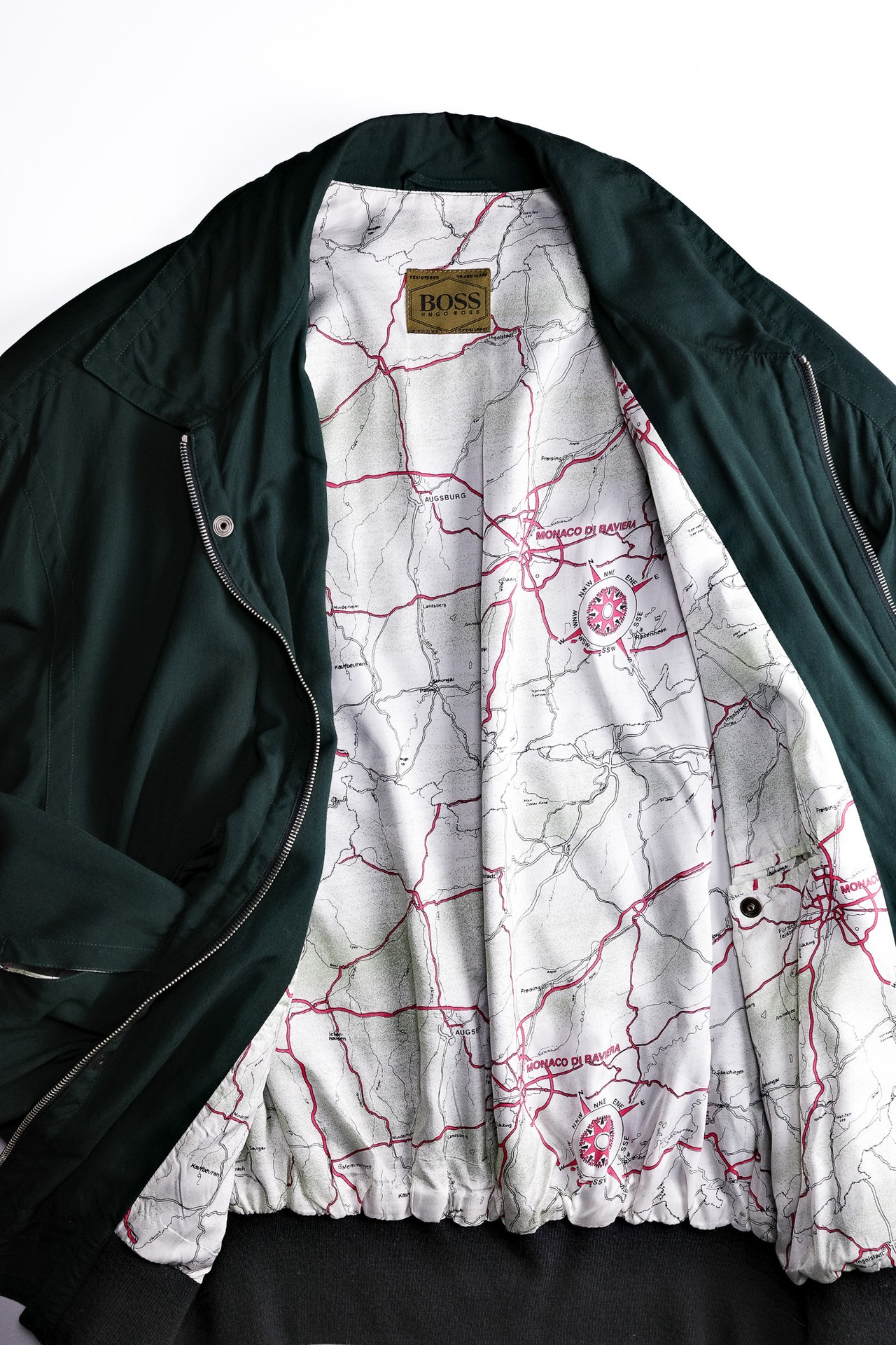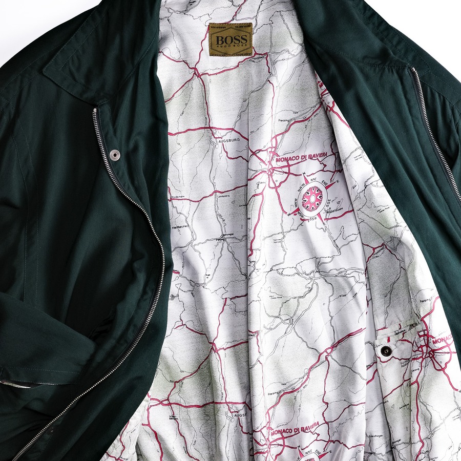 [Late 1990's] “BOSS / HUGO BOSS” Map Lining Zip-Up Blouson with Functional Hidden Front Pocket (Made in Italy)
