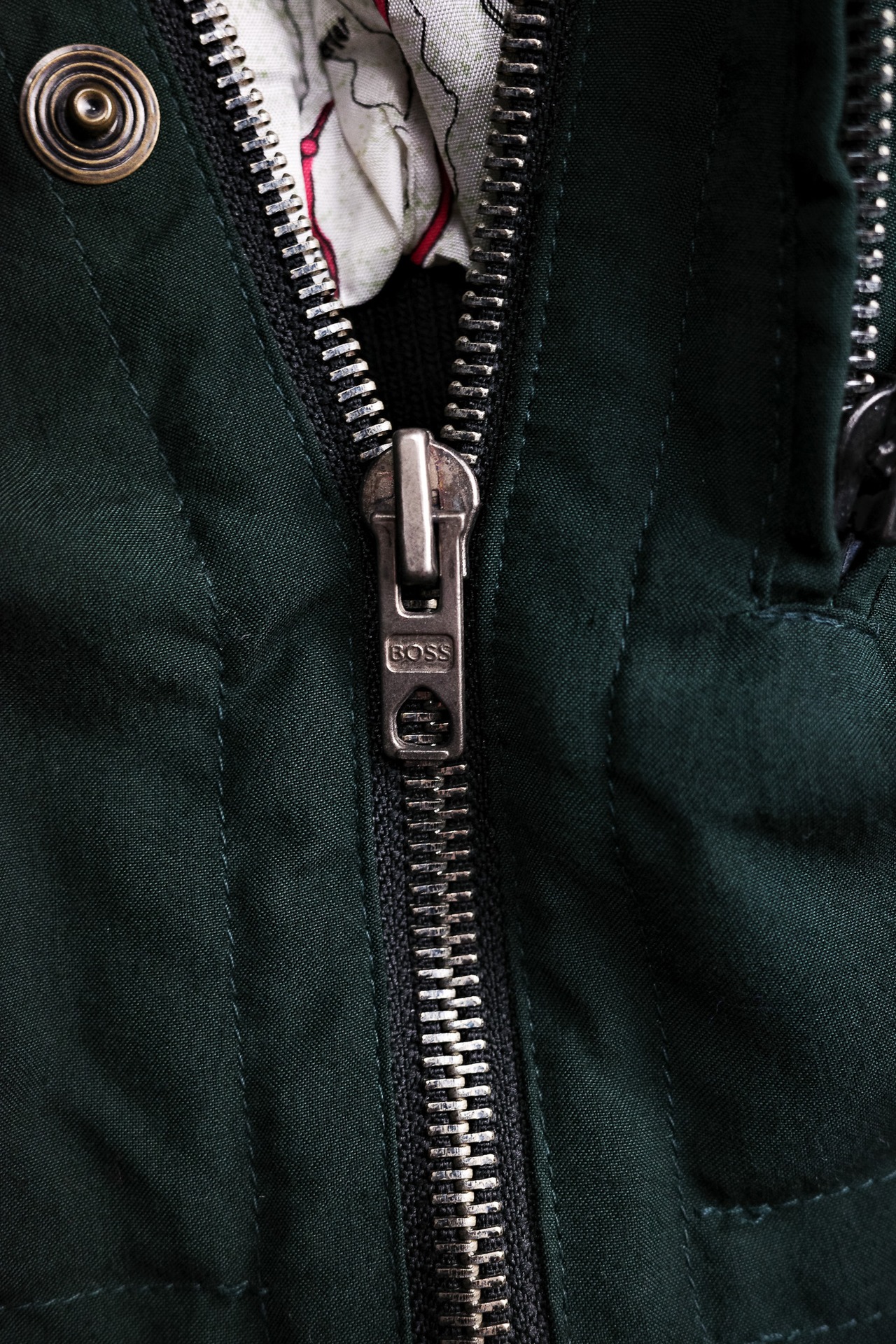 フロントに配された縦のジップポケットは、この一着を象徴するディテールです。