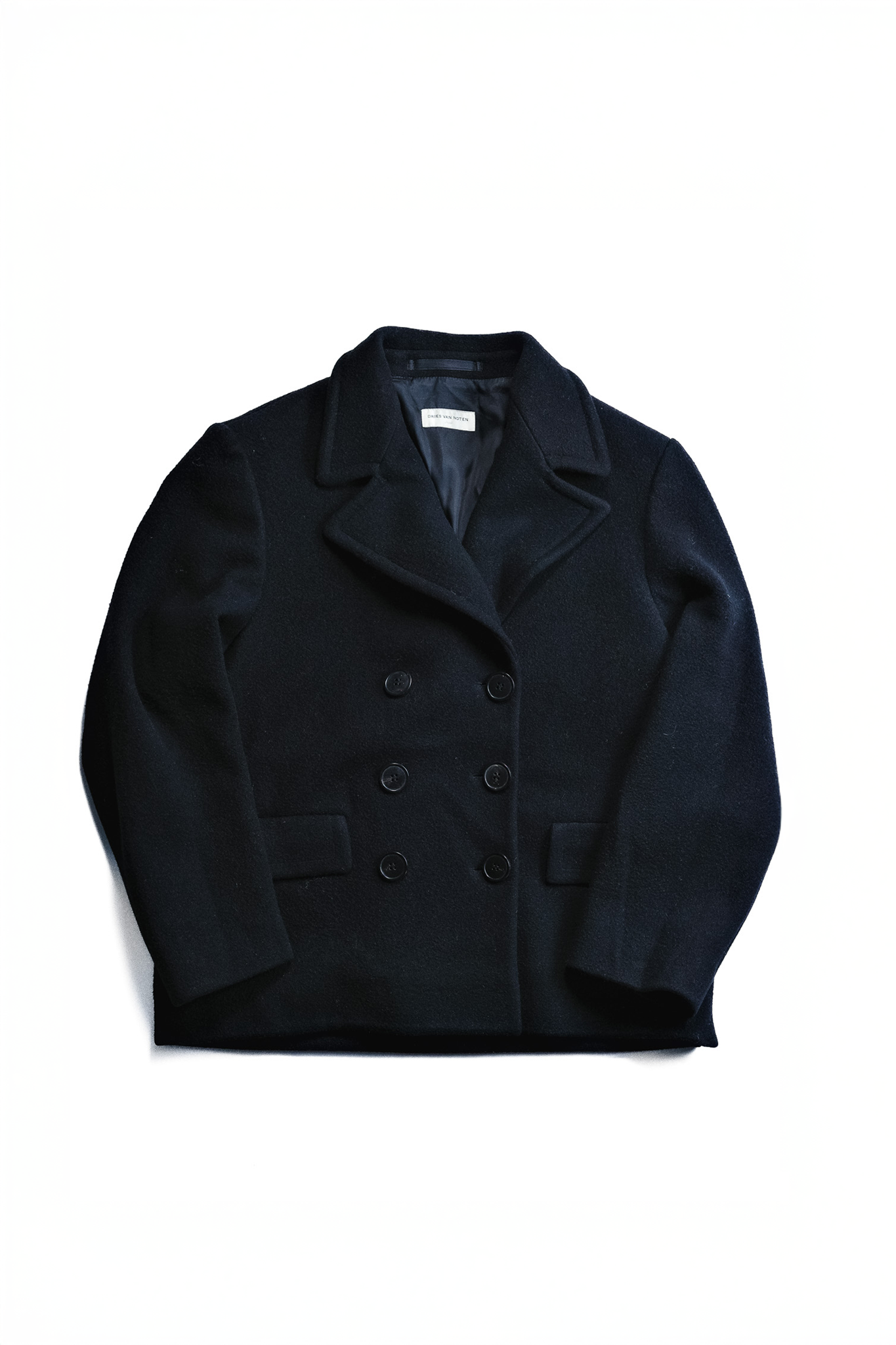 [2000's] “DRIES VAN NOTEN” Camel–Wool Double-Breasted Short Coat (Made in Belgium)