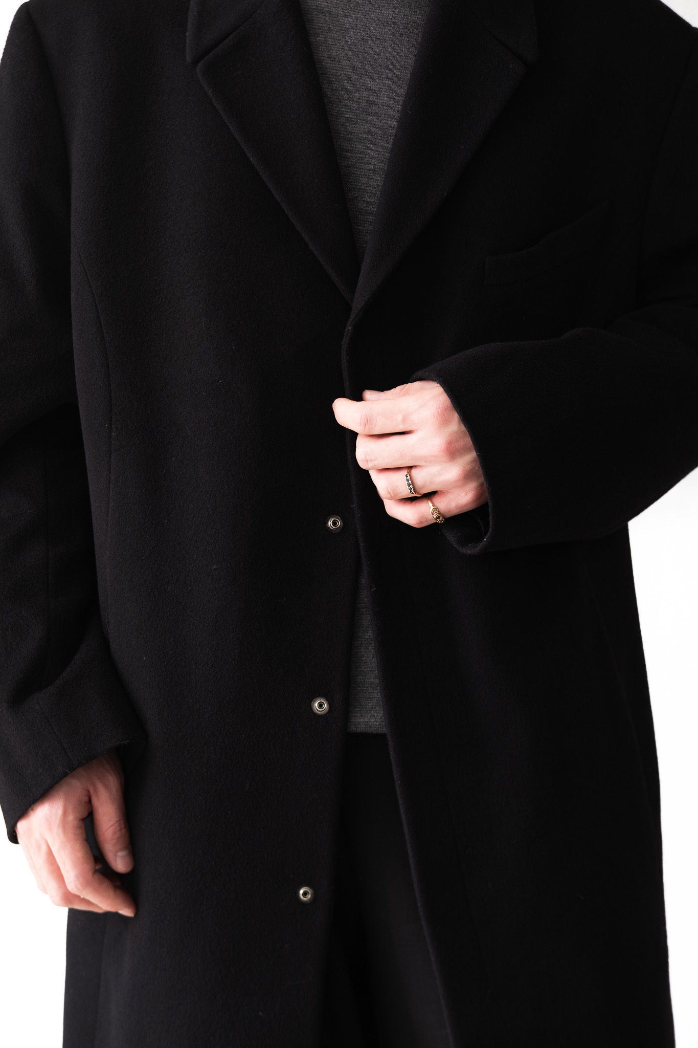 [1990's] “Thierry Mugler PARIS” Snap-Front Wool-Cashmere Tailored Coat (Designed by Thierry Mugler)