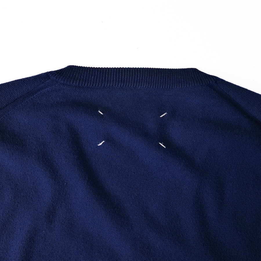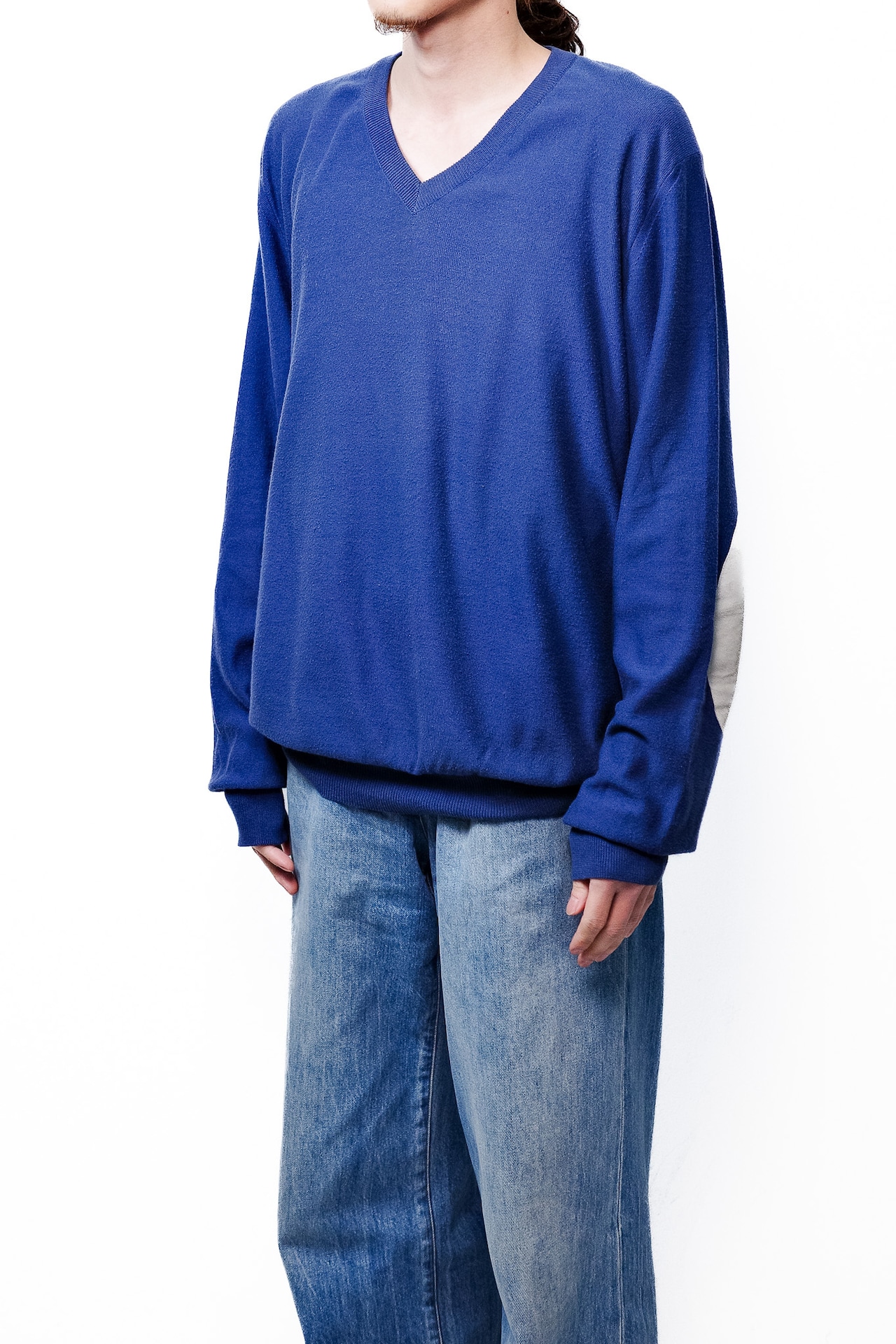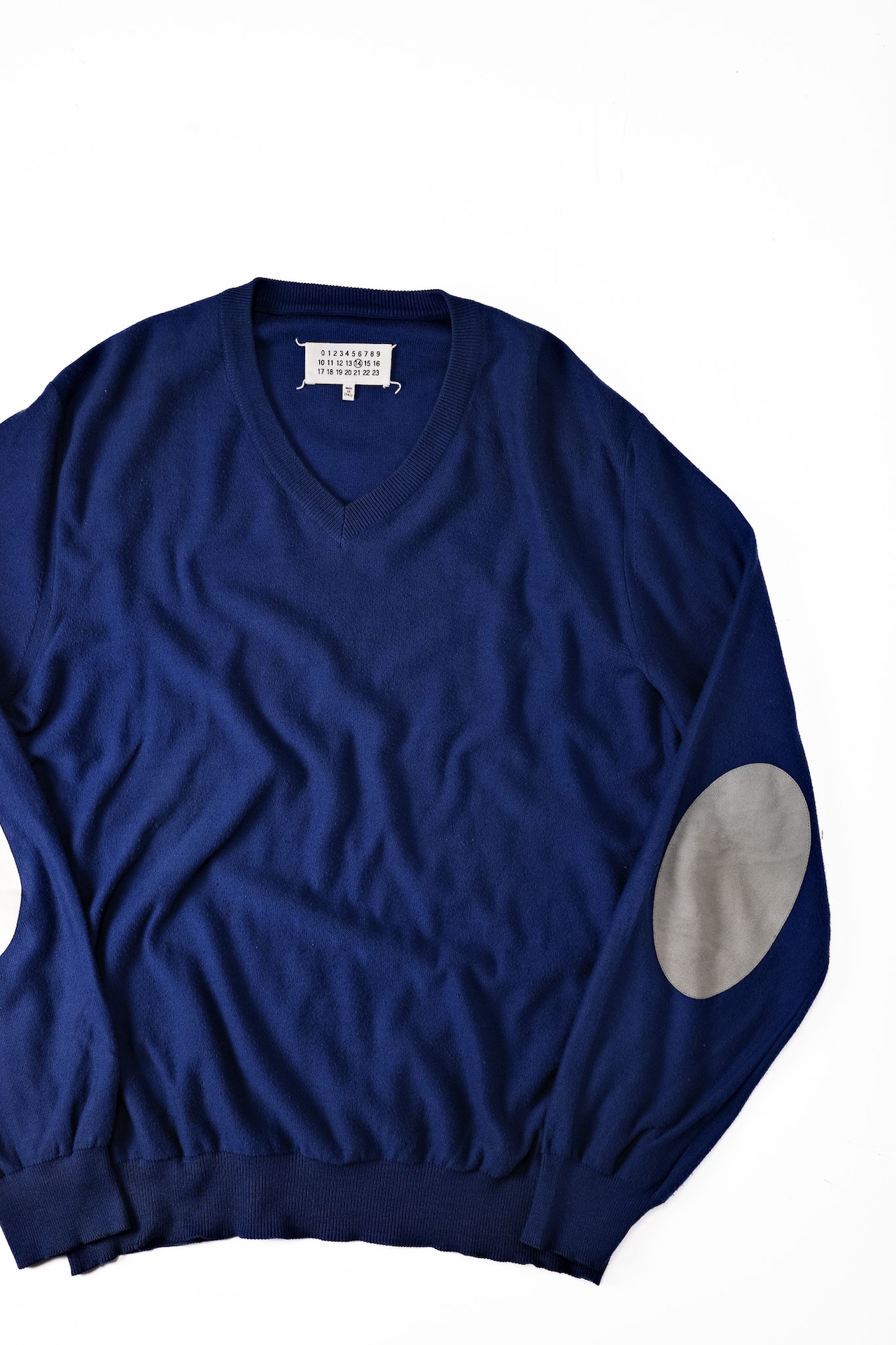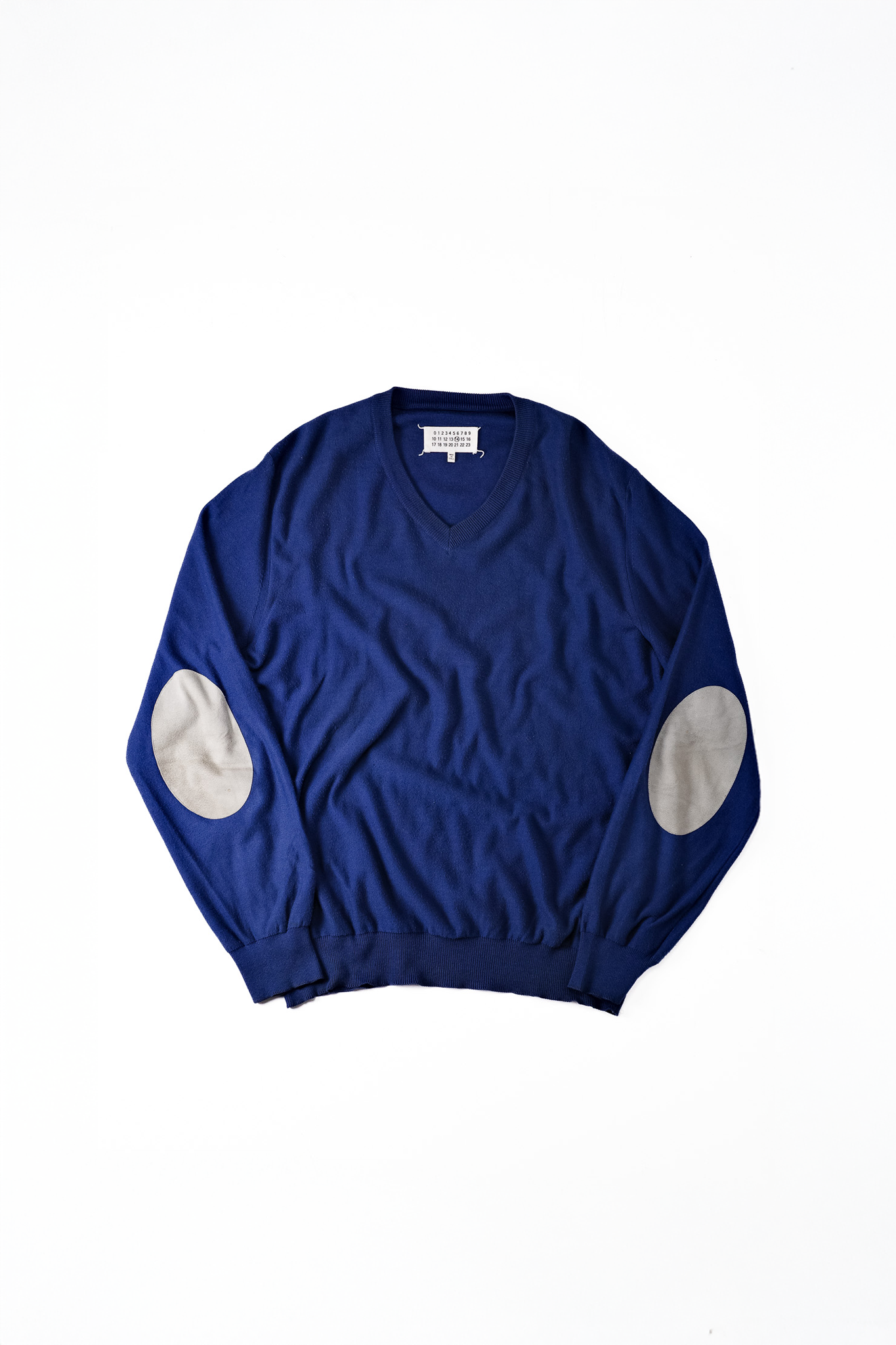 [2013SS] "Maison Martin Margiela" Cotton Knit Elbow-Patch V-Neck Sweater (Made in Italy)