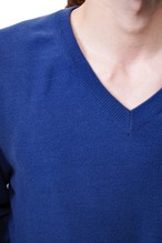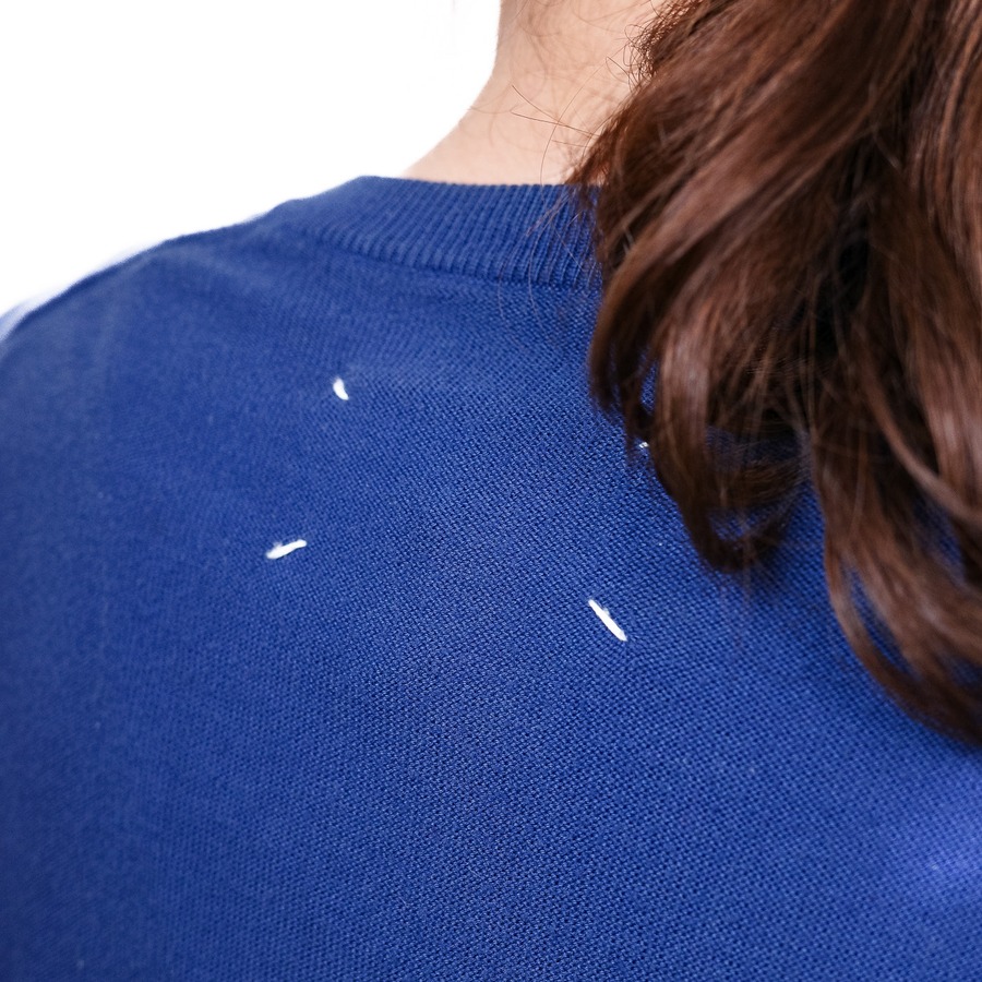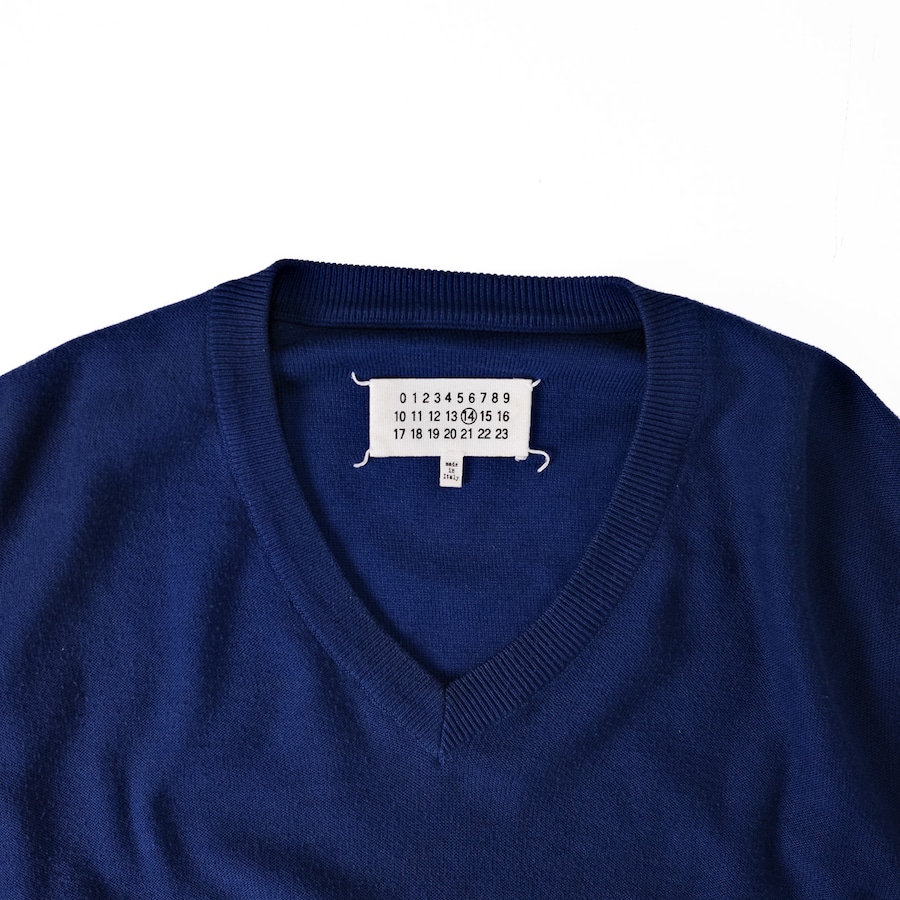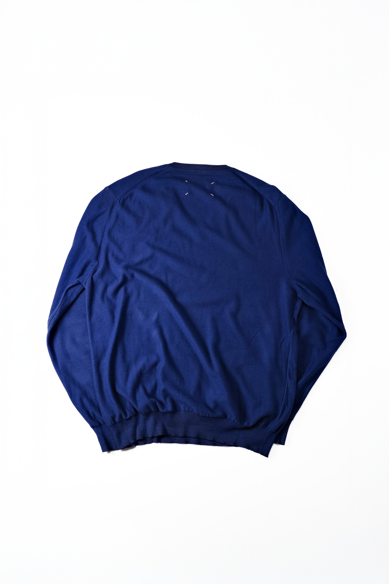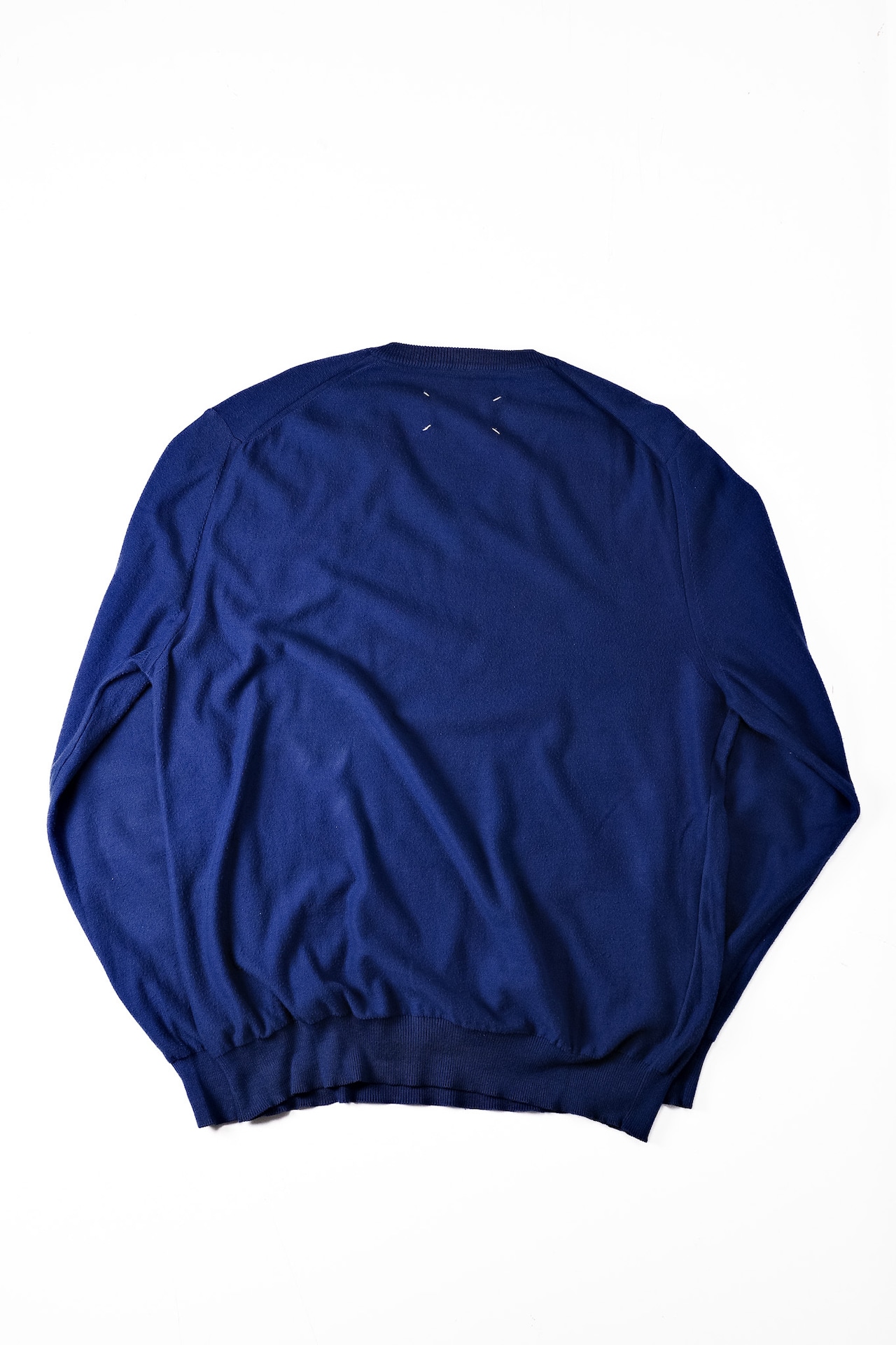 [2013SS] "Maison Martin Margiela" Cotton Knit Elbow-Patch V-Neck Sweater (Made in Italy)