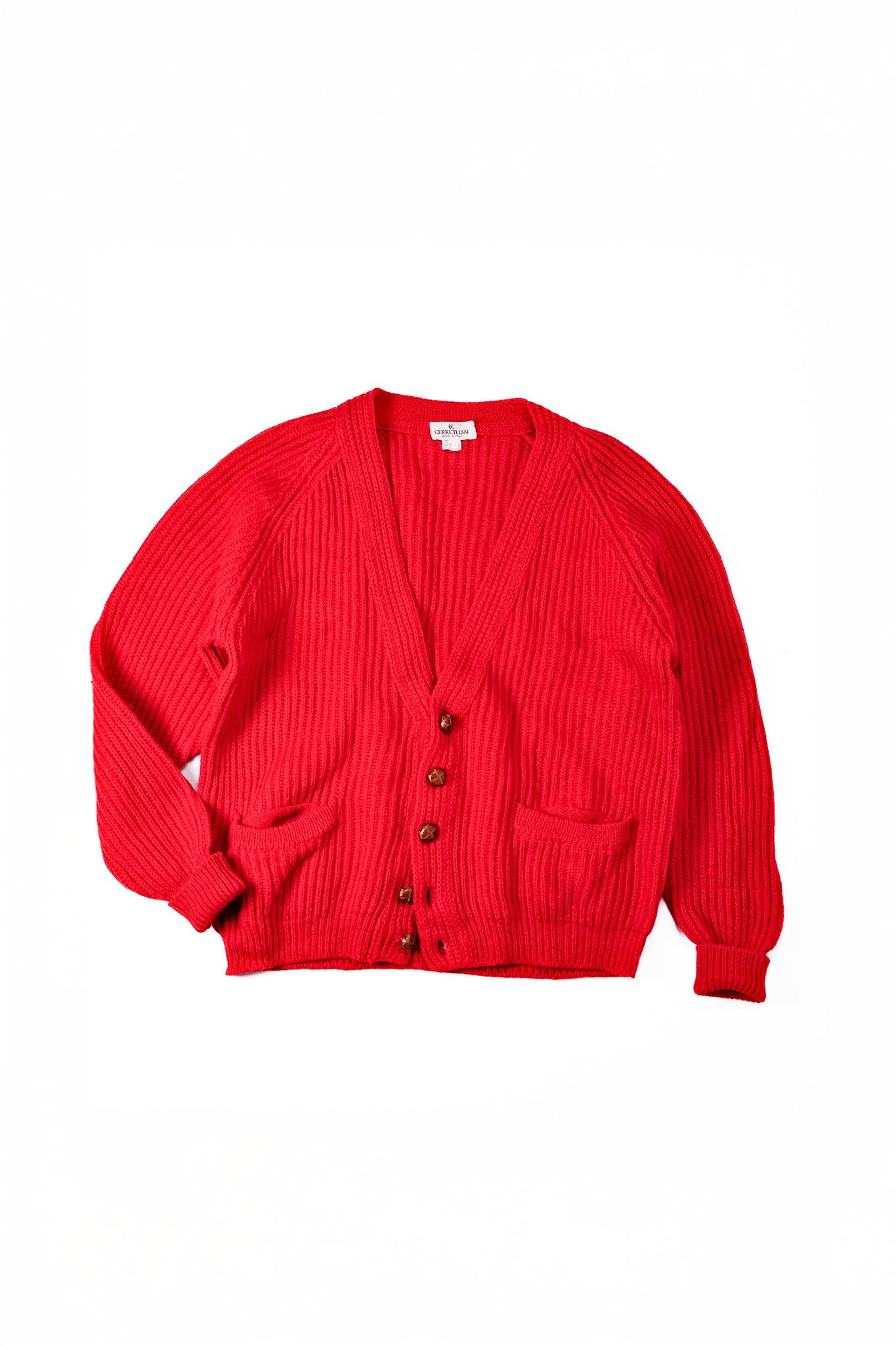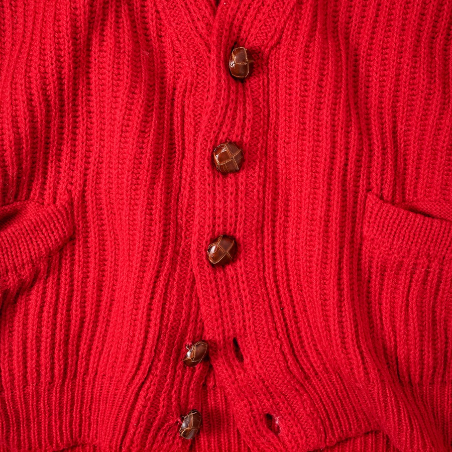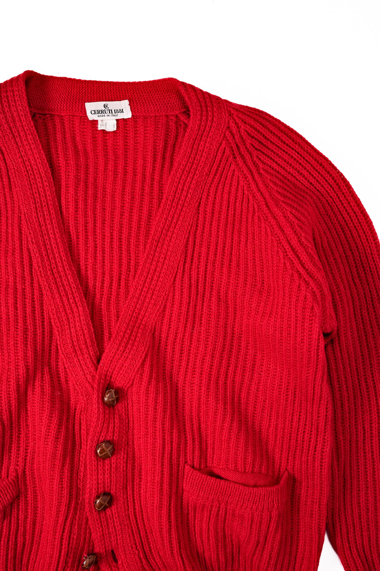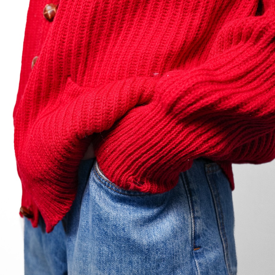 [1980’s]“CERRUTI 1881” Chunky Wool Rib Knit Red Cardigan (made in Italy)
