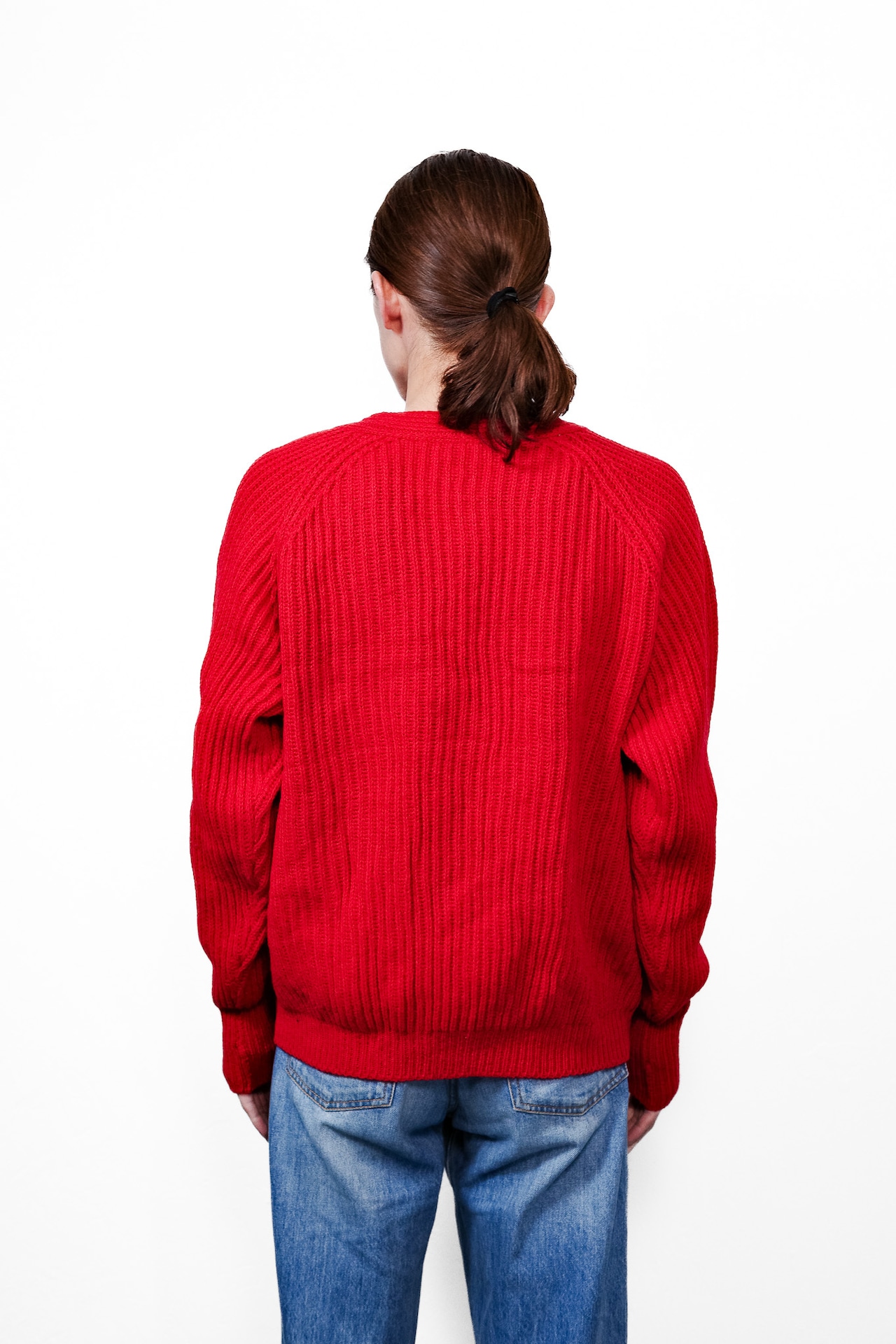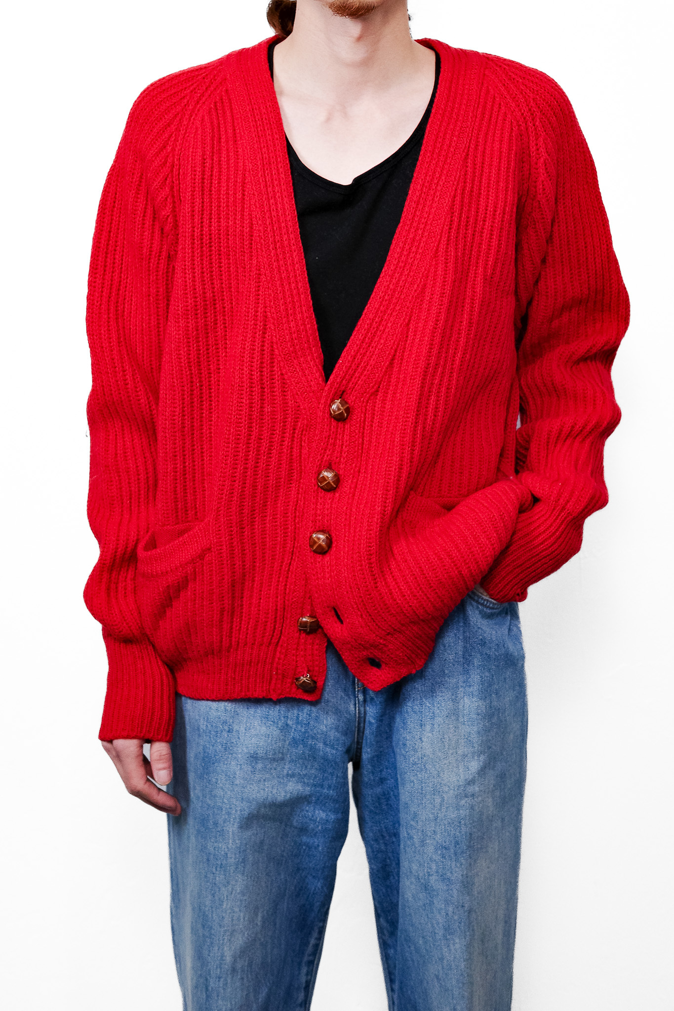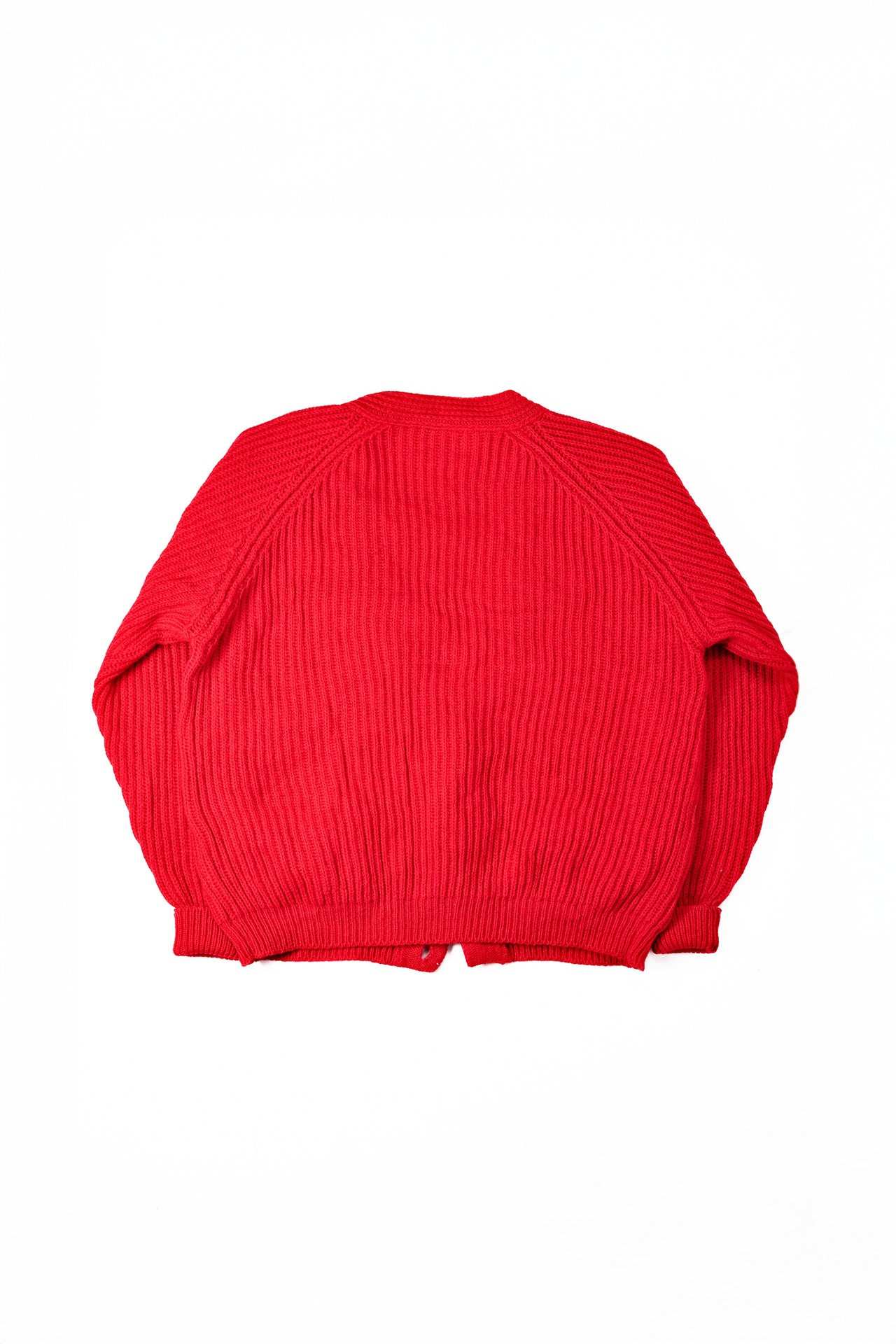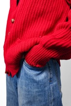 [1980’s]“CERRUTI 1881” Chunky Wool Rib Knit Red Cardigan (made in Italy)