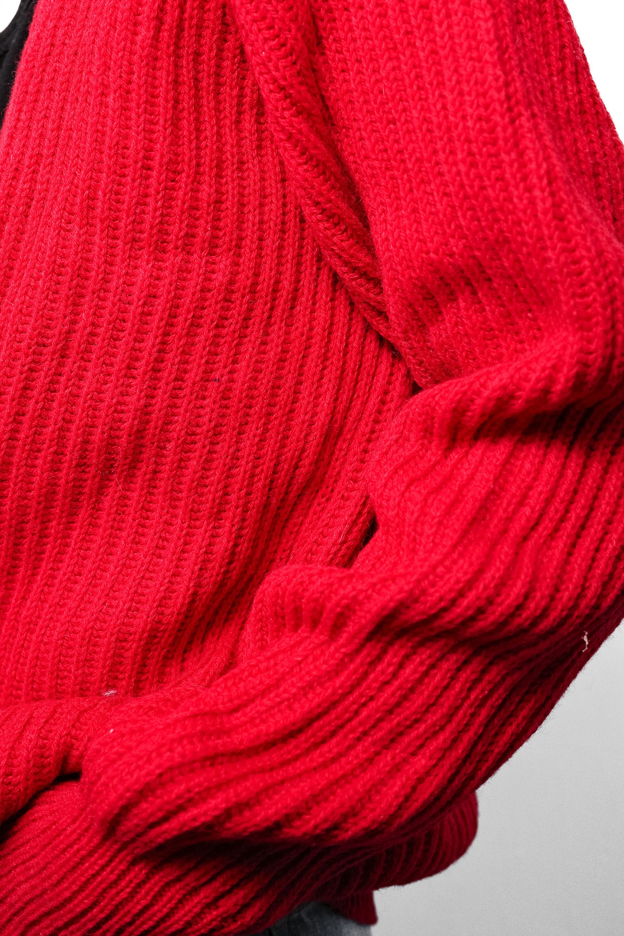 大胆なローゲージの畦編みは、太番手ならではの迫力がありながら、編み目が乱れずに均一。