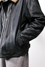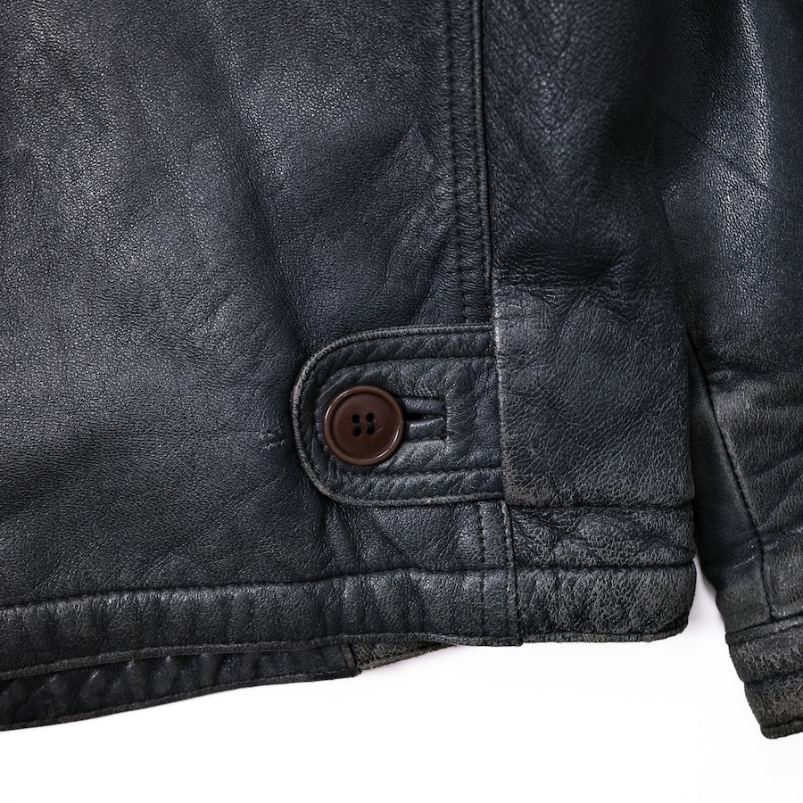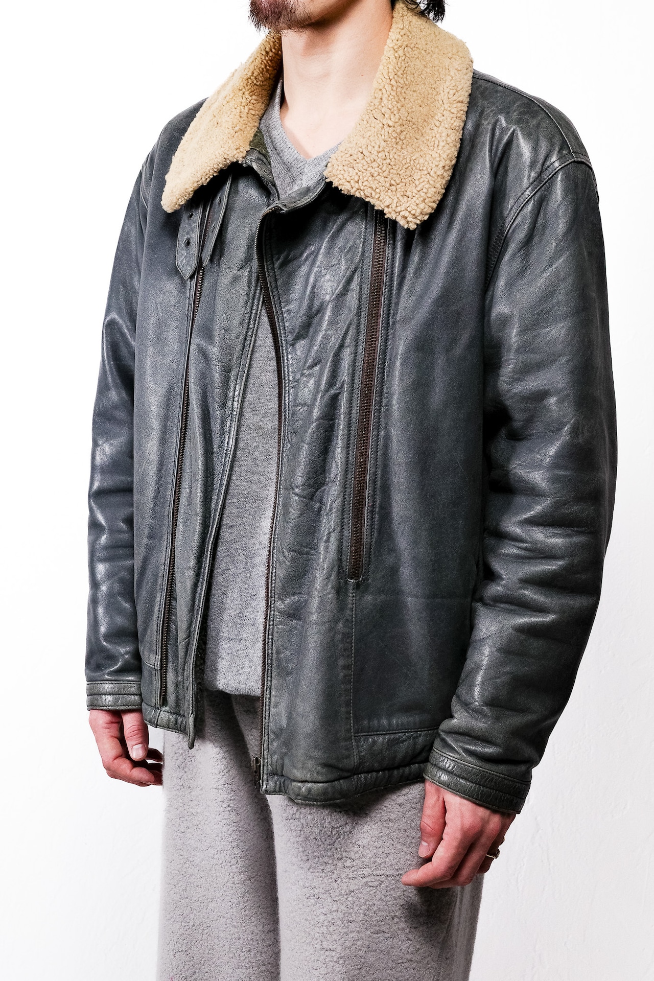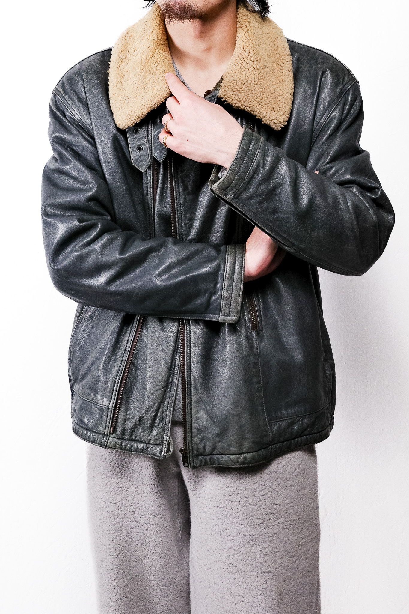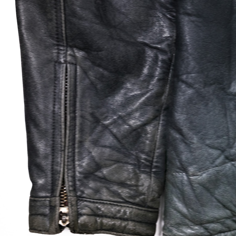 現代のプロダクトでは、コストや効率の問題からなかなか辿り着けないレベルの作り込みです。革の厚み、縫製の精度、インナー構造、金具の選定。そのすべてが妥協なくまとめられた重衣料としての説得力。この時代の空気を纏ったレザーアウターには、単なるヴィンテージ以上の価値が宿っています。