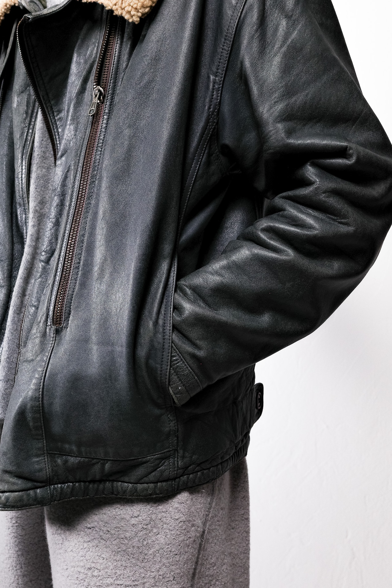 本作に使われているシープスキンも、銀面の細かな皺、マットに粉を吹くような退色、袖のしなり方から、そのクオリティがはっきりと読み取れます。