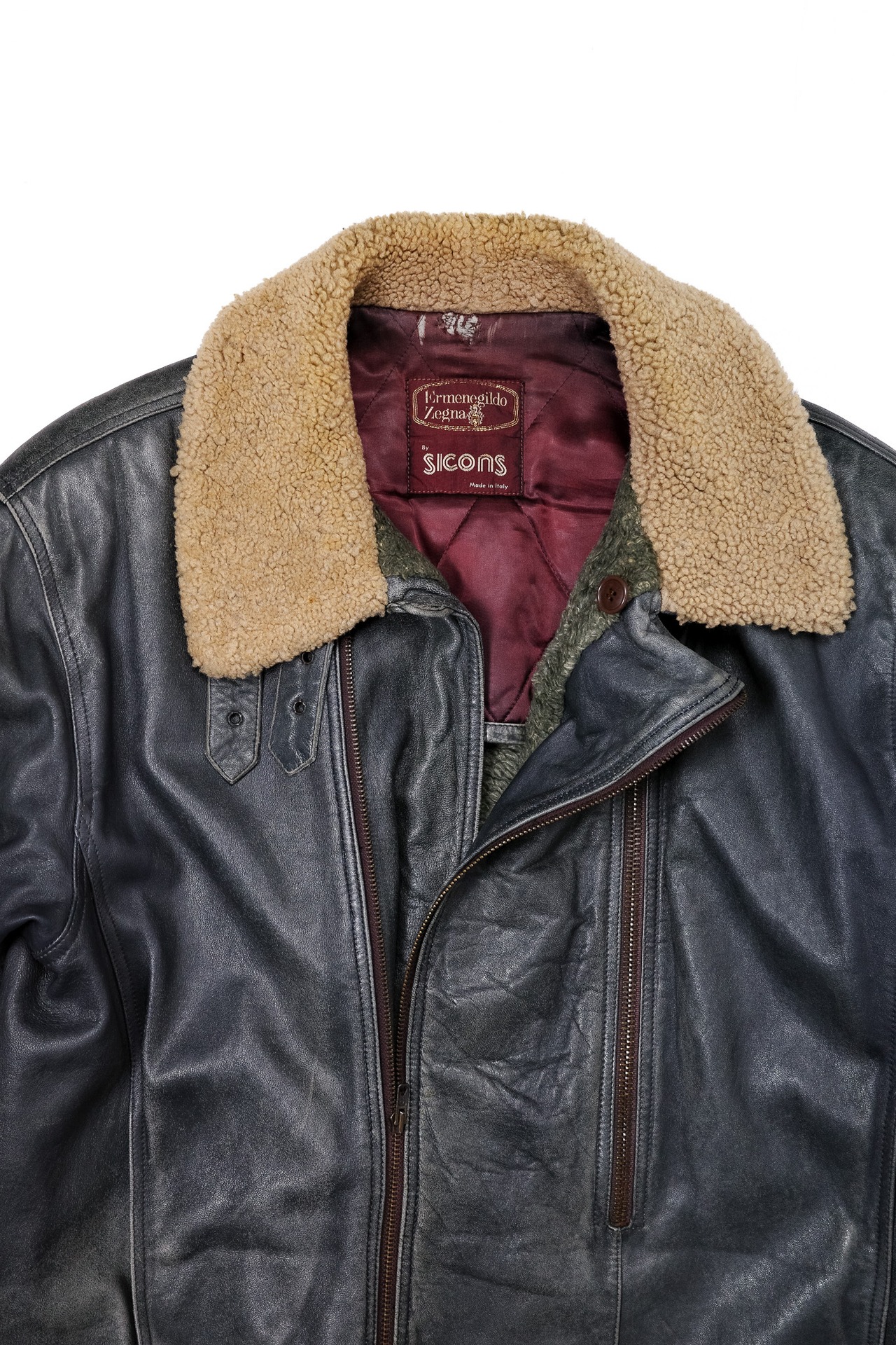 [Early–Mid 1980's] “Ermenegildo Zegna × SICONS” Shearling Hybrid Flight Jacket – B-3 × Riders Construction (Made in Italy)