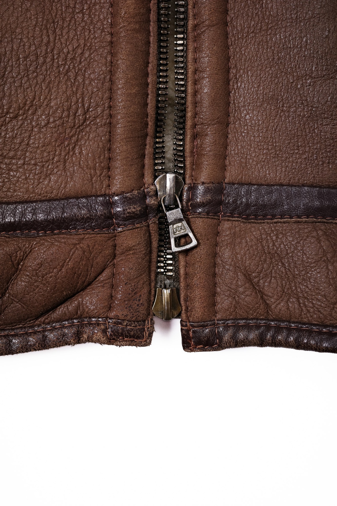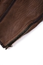 B-3の補強革とは違い、素材の選定からして高品位で、ムートンの重厚さを引き締める役割を果たしています。