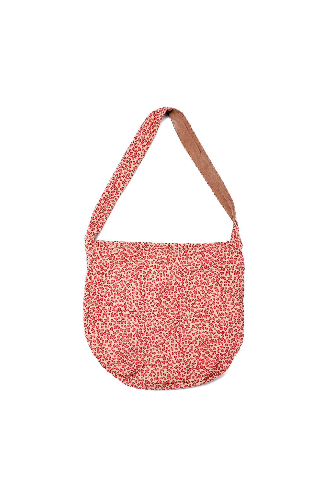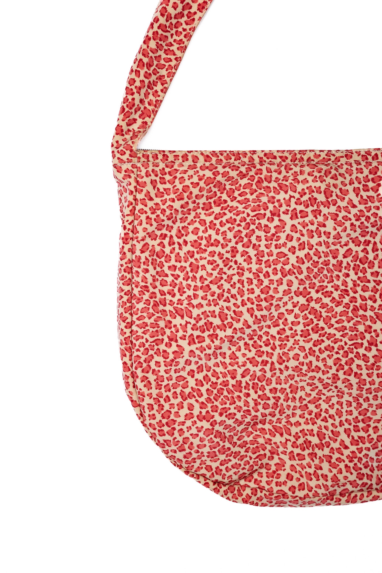 左右非対称の立体がつくる陰影と、プリントの奥行きがぶつかり合うこの感じは、今のバッグにはなかなか見られません。